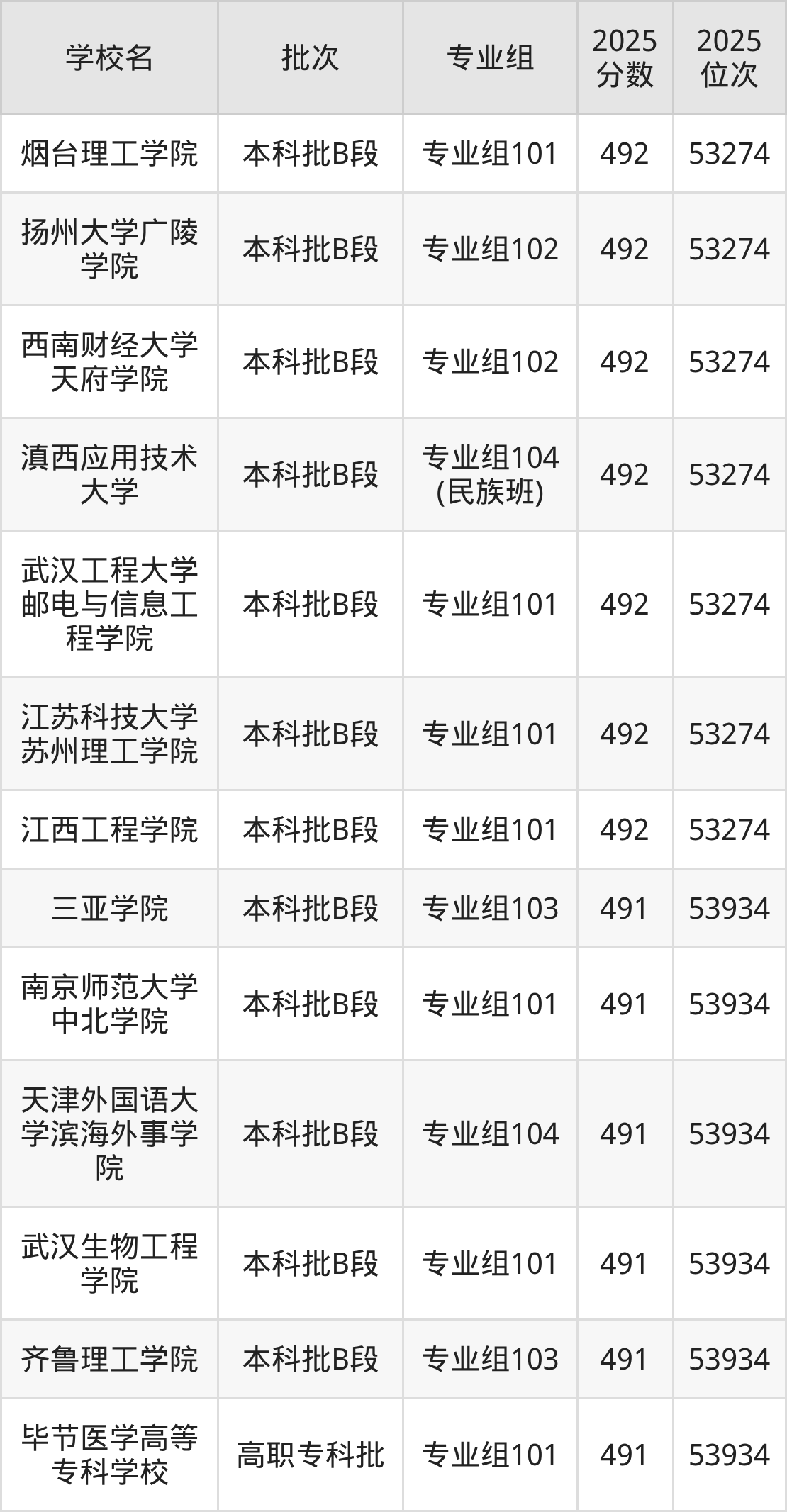 2025年四川高考历史类491分(53275名~53934名)能上的大学有三亚学院专业组103、毕节医学高等专科学校专业组101、齐鲁理工学院专业组103、南京师范大学中北学院专业组101等。