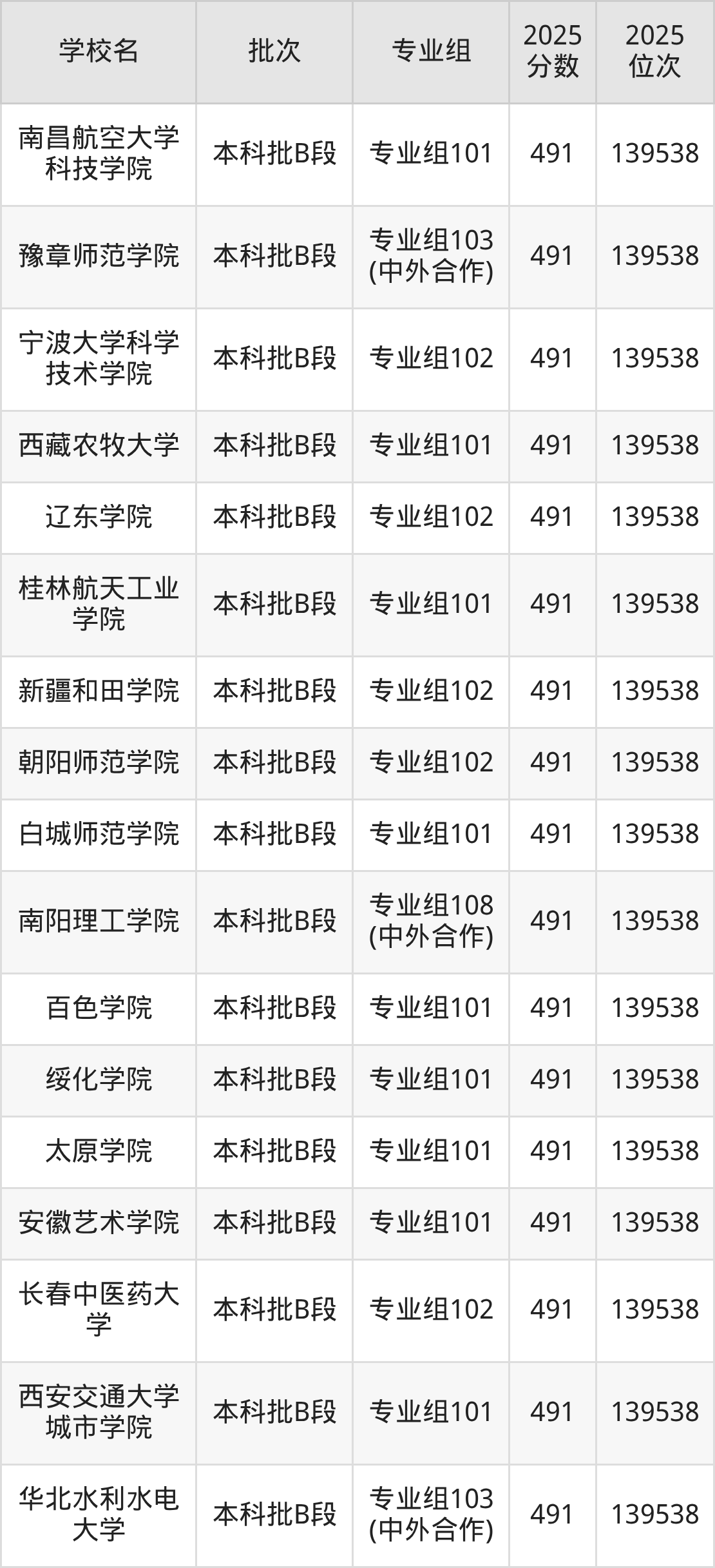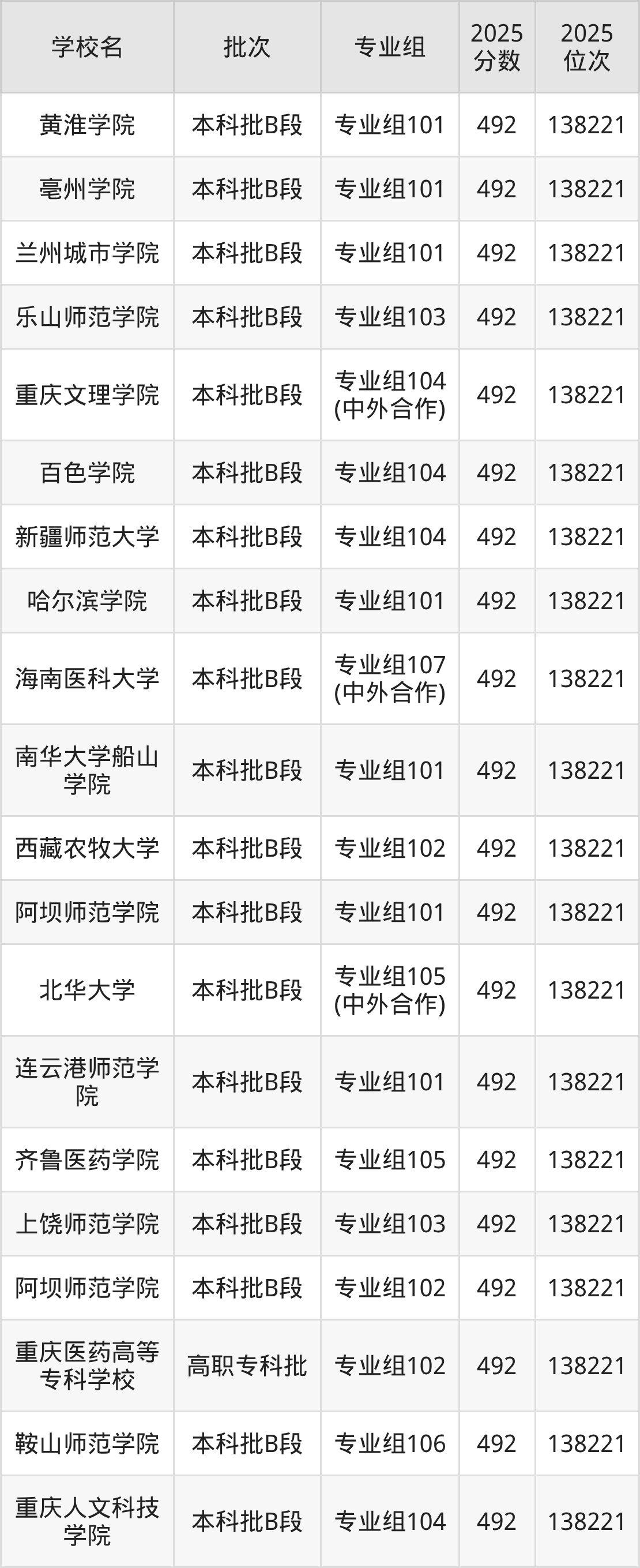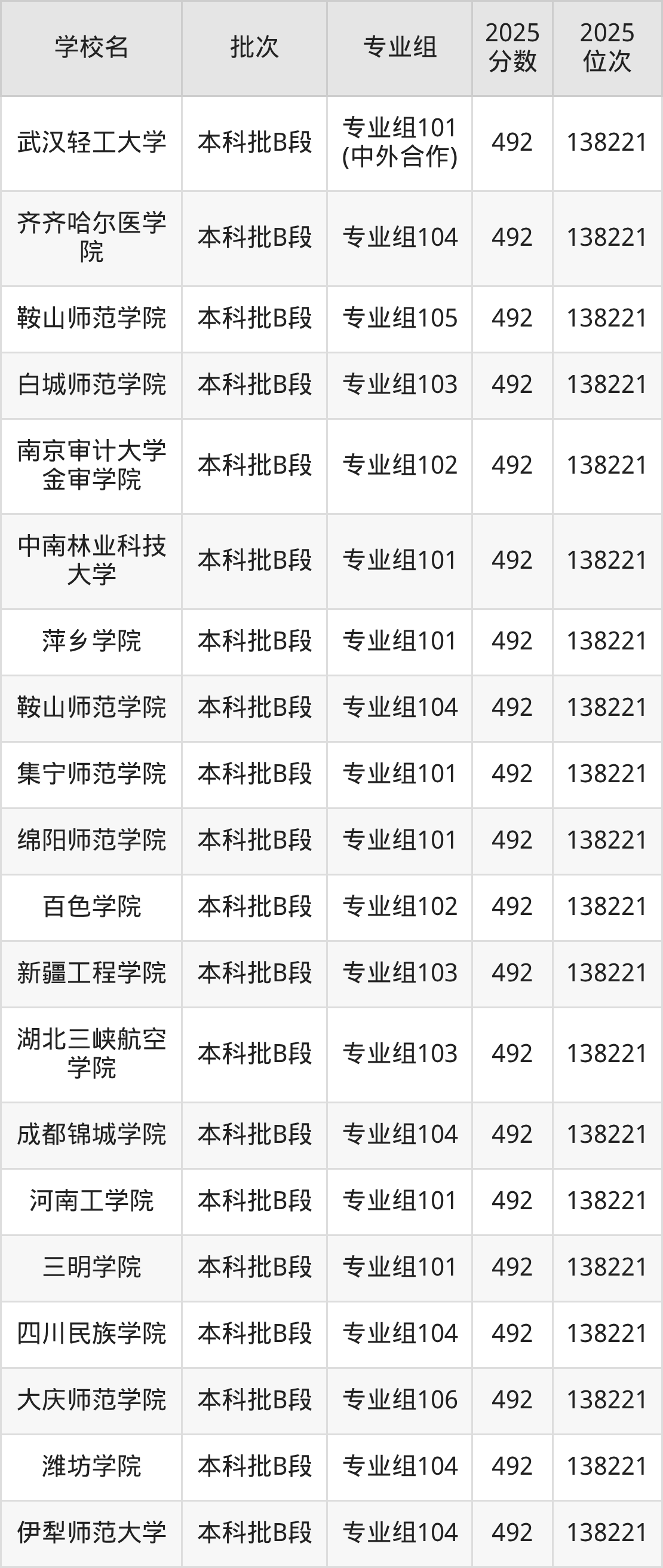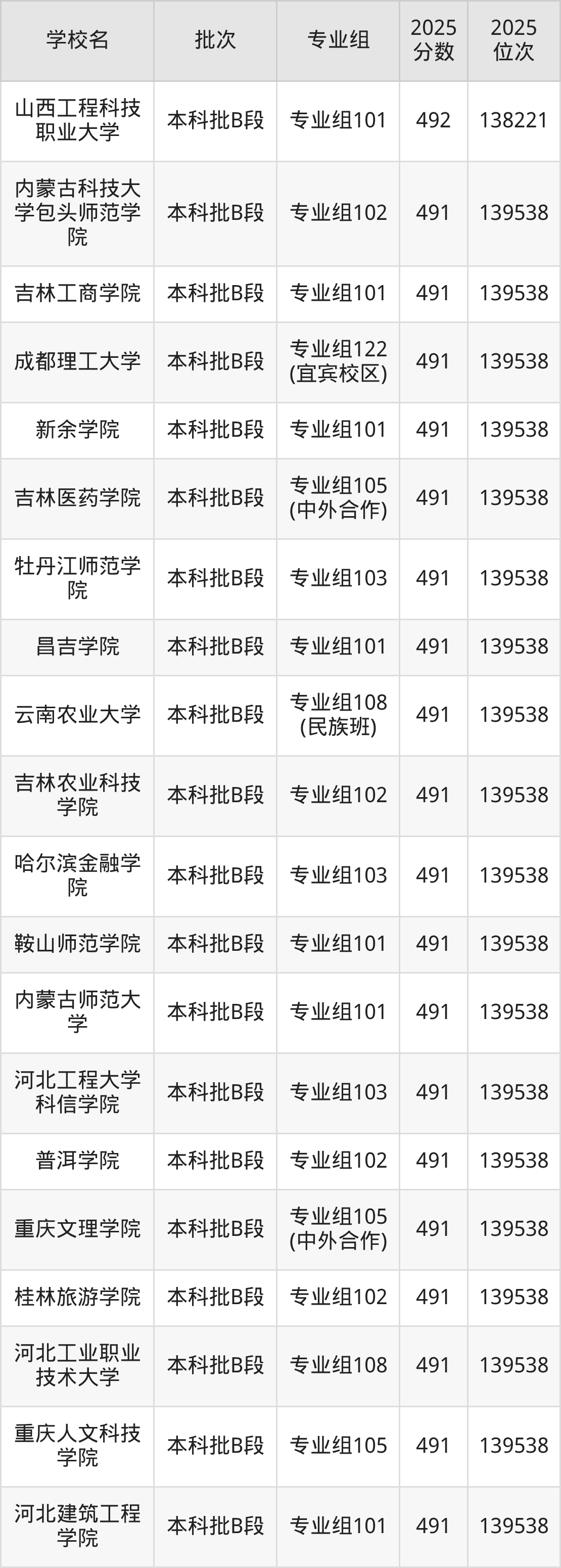 2025年四川高考物理类491分(138222名~139538名)能上的大学有成都理工大学专业组122(宜宾校区)、新余学院专业组101、吉林医药学院专业组105(中外合作)、牡丹江师范学院专业组103等。