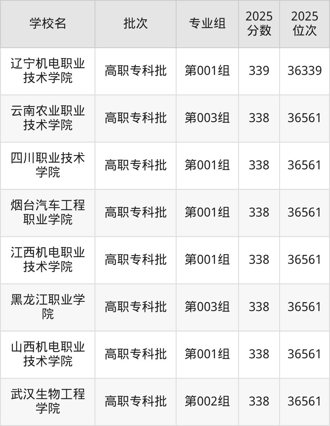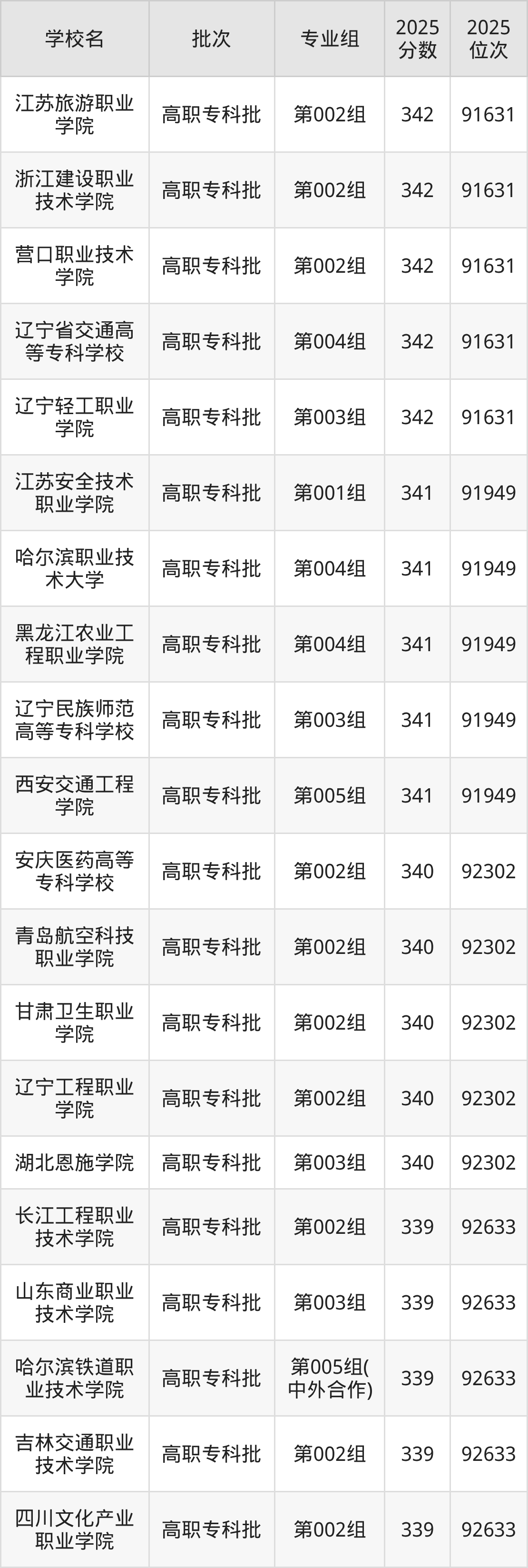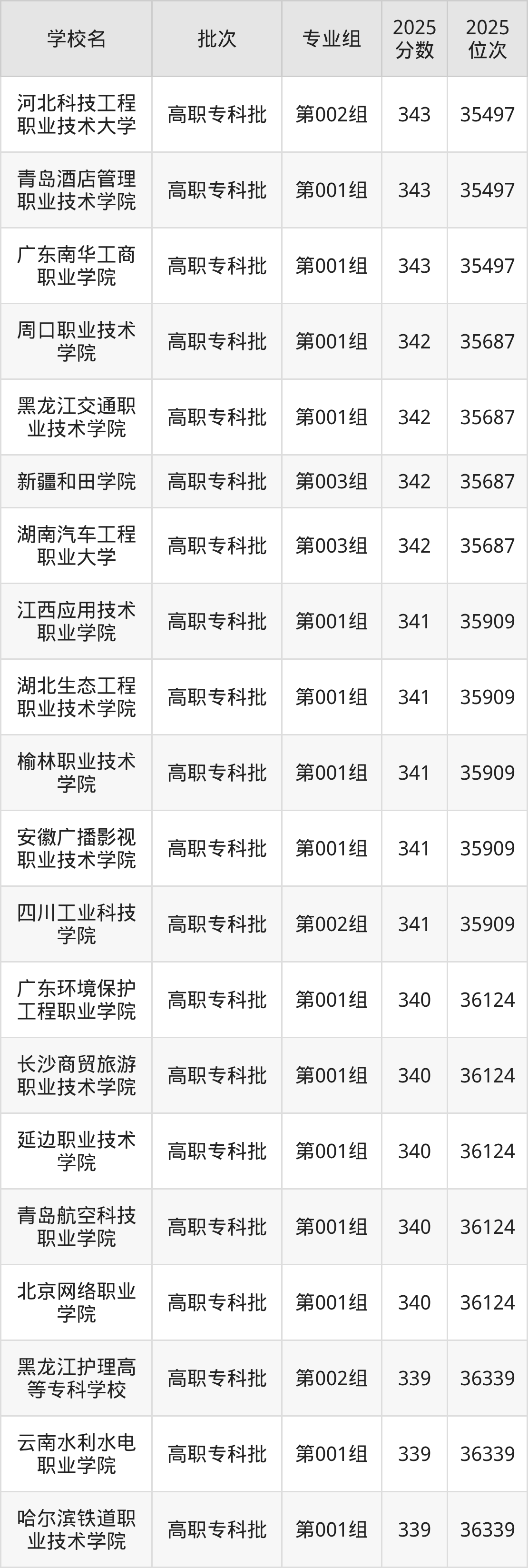 2025年黑龙江高考历史类340分(35910名~36124名)能上的大学有北京网络职业学院第001组、延边职业技术学院第001组、青岛航空科技职业学院第001组、长沙商贸旅游职业技术学院第001组等。