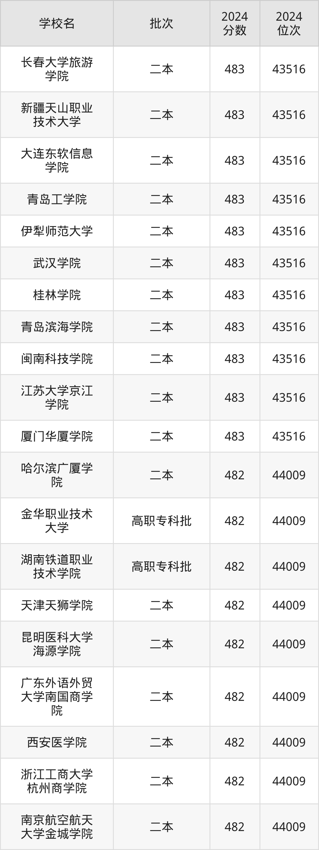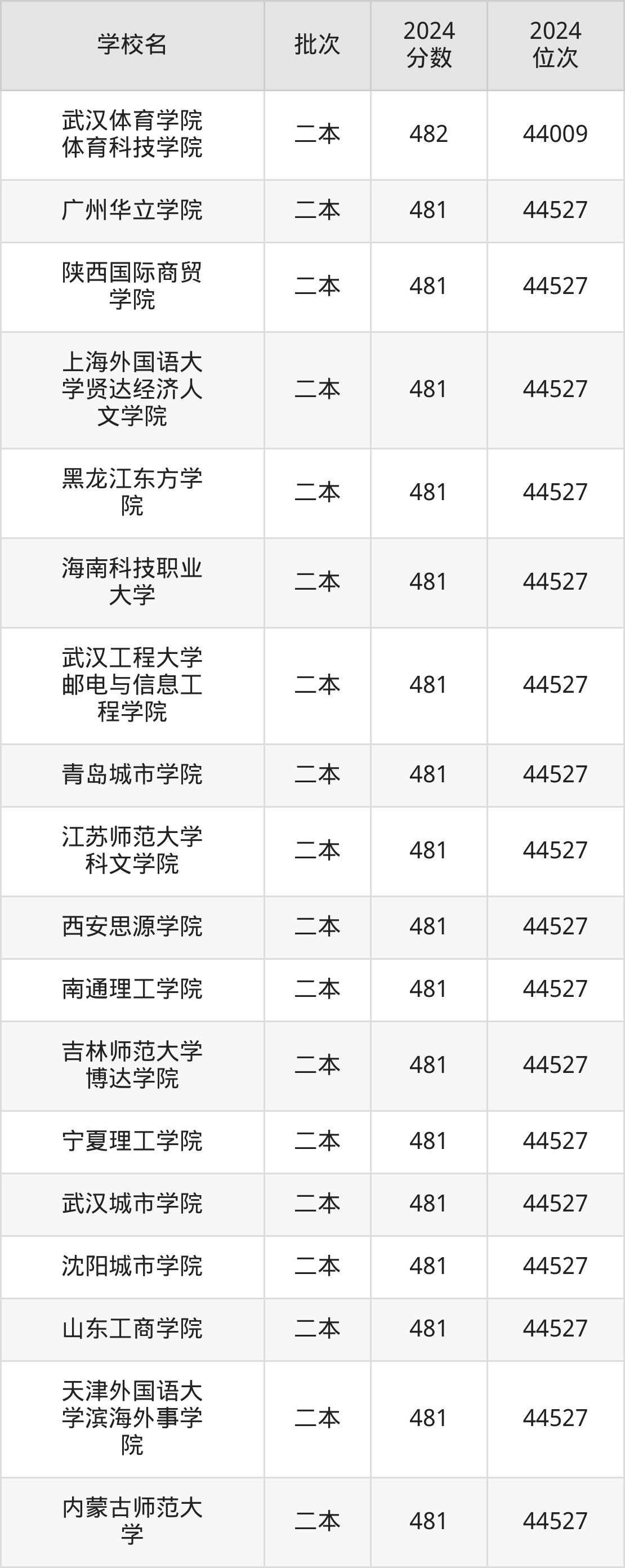 这些都是2025年高考文科44010名~44527名考生可以报考的大学,更多学校名单如下表所示: