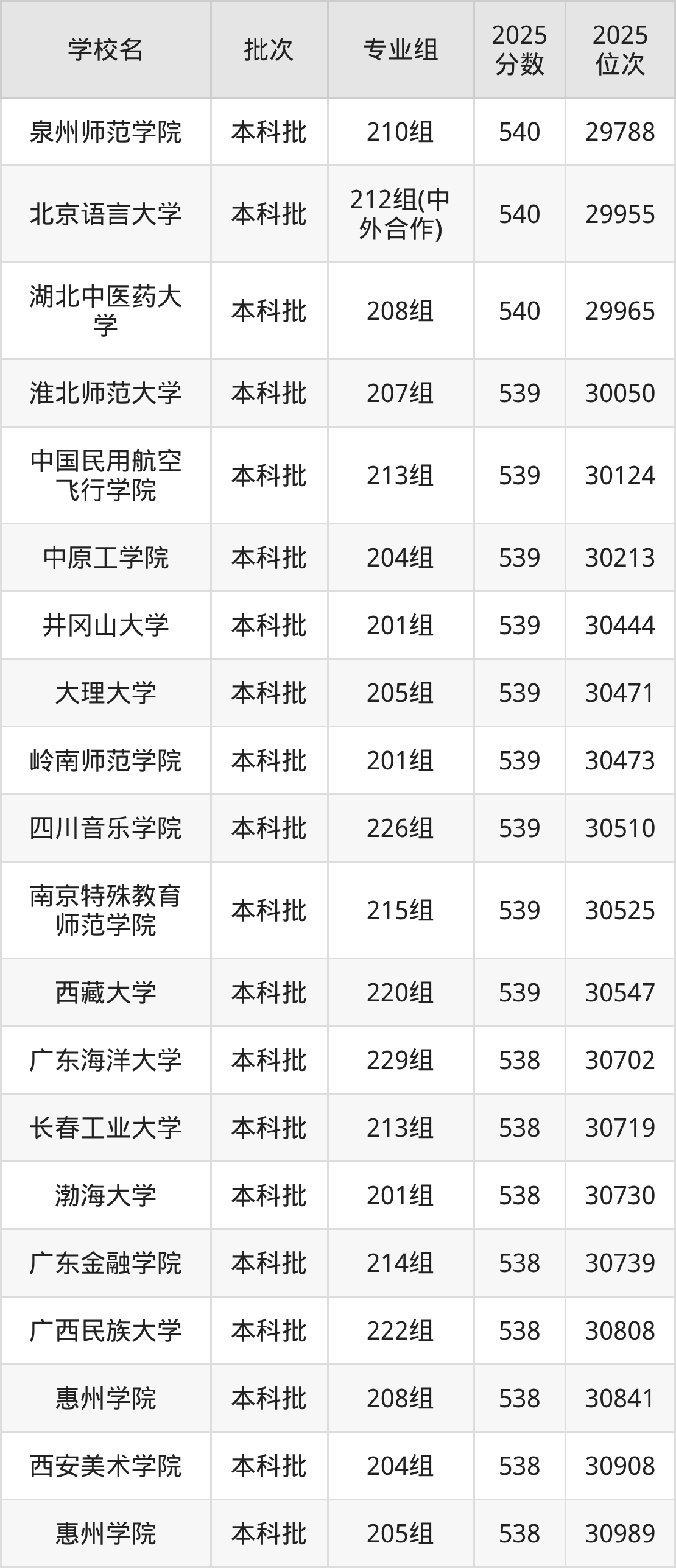 这些都是2026年高考历史类30033名~30648名考生可以报考的大学,更多学校名单如下表所示: