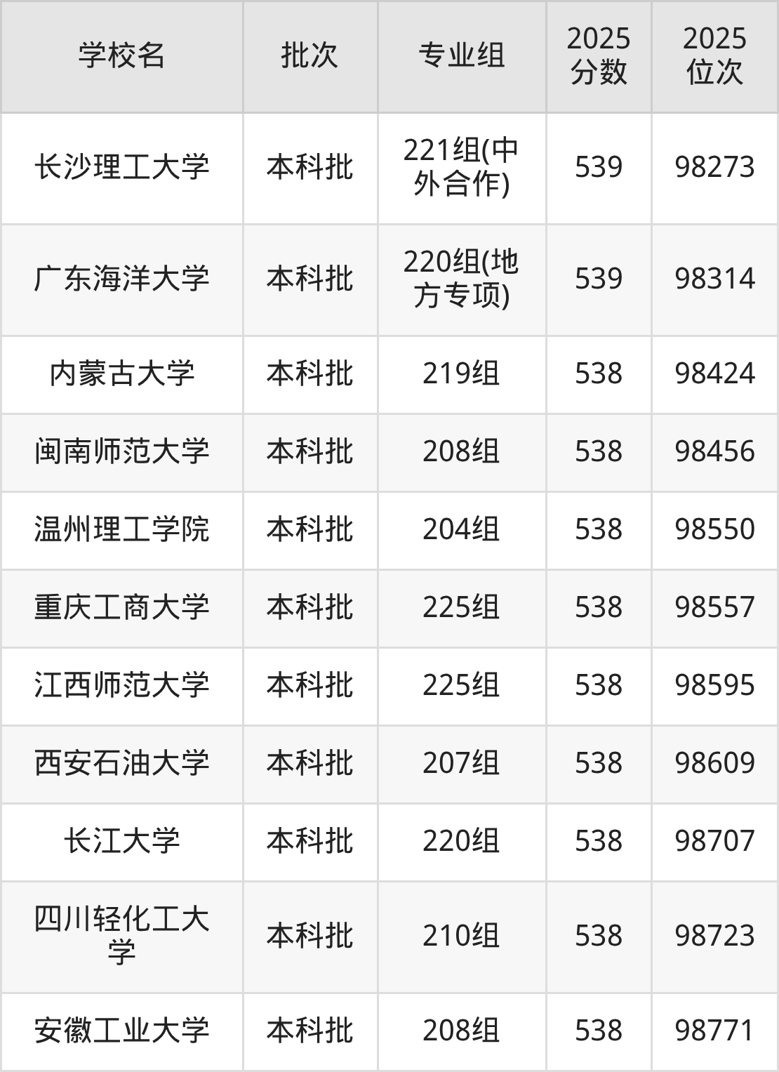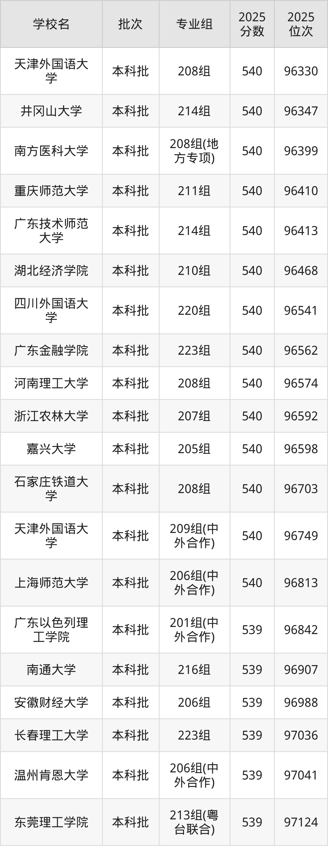 2025年广东高考物理类539分(96826名~98390名)能上的大学有大连交通大学206组、沈阳农业大学205组、辽宁中医药大学207组、长春理工大学223组等。