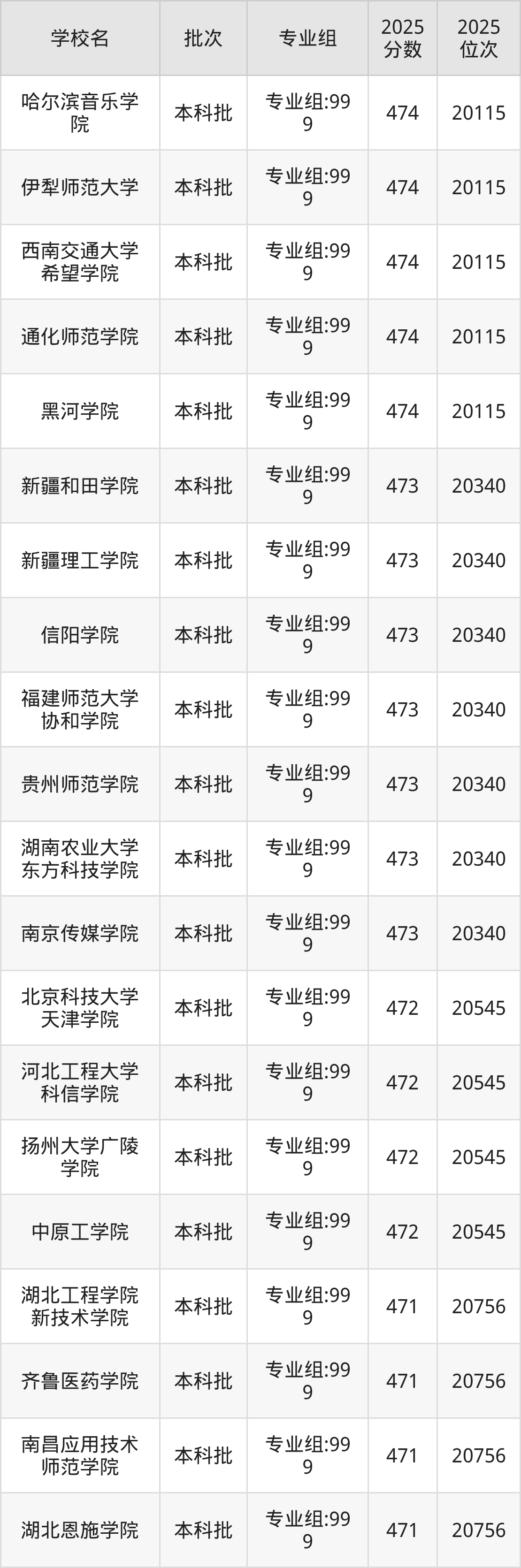 这些都是2026年高考历史类20546名~20756名考生可以报考的大学,更多学校名单如下表所示: