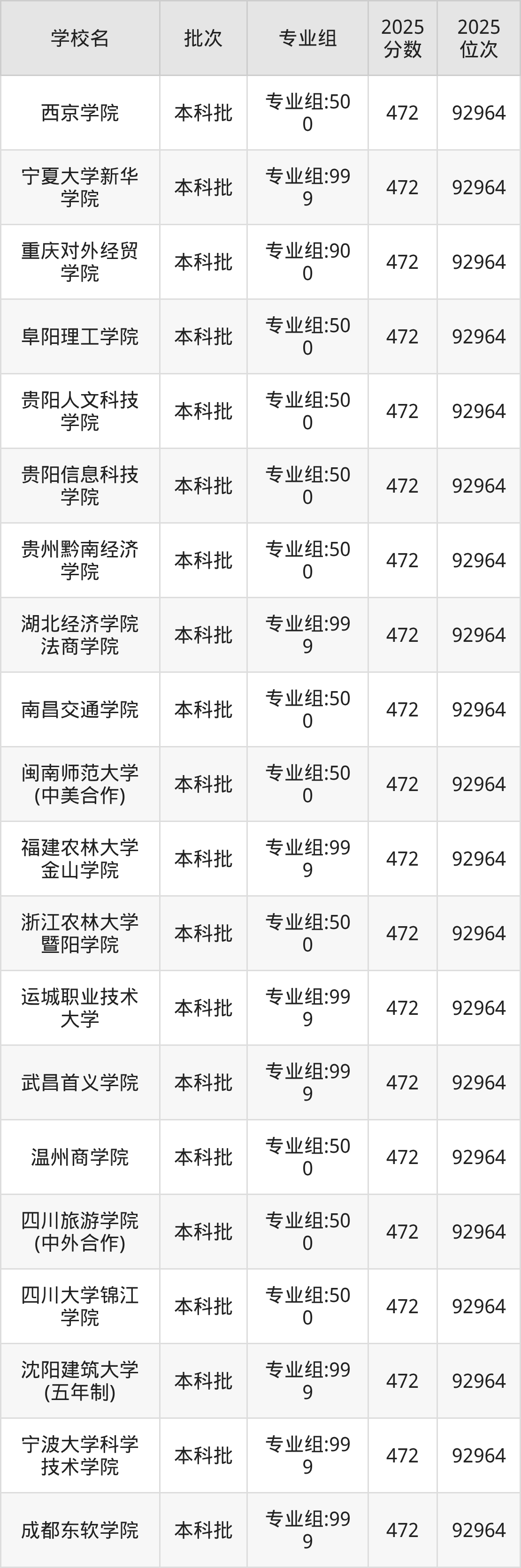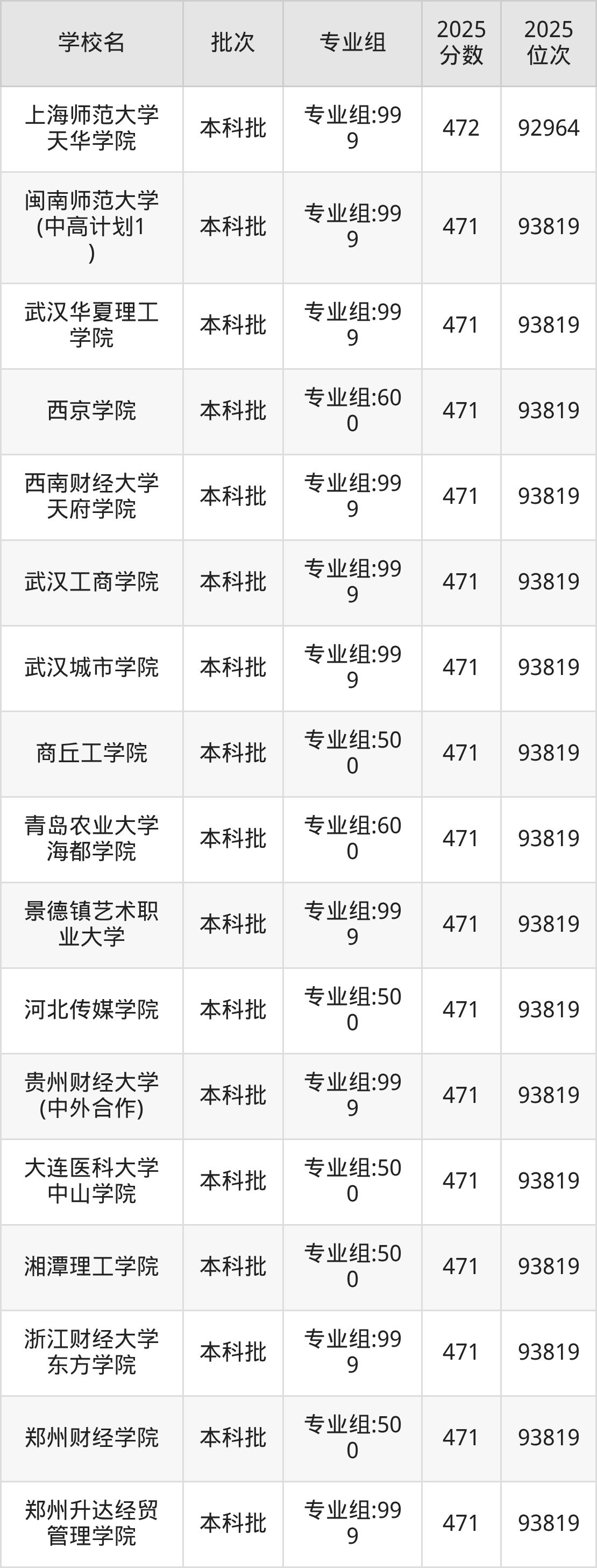 这些都是2026年高考物理类92965名~93819名考生可以报考的大学,更多学校名单如下表所示: