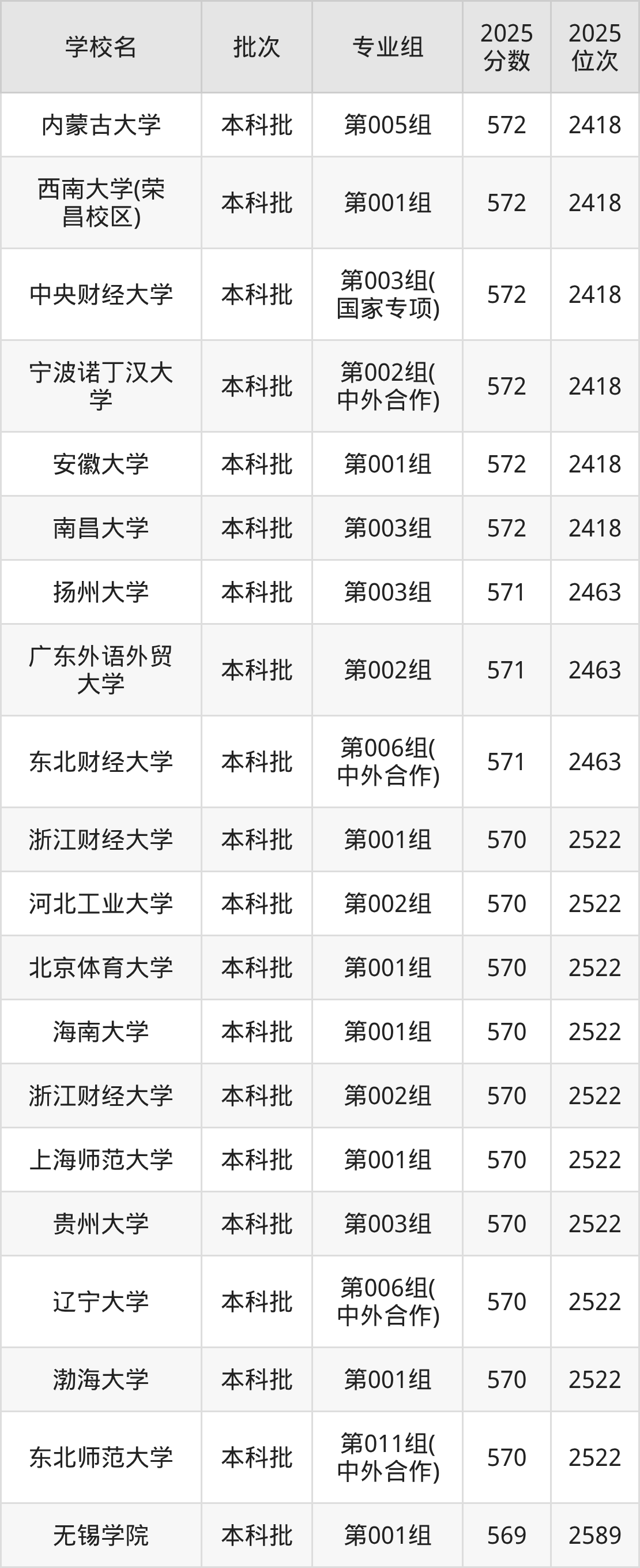 这些都是2026年高考历史类2895名~2959名考生可以报考的大学,更多学校名单如下表所示: