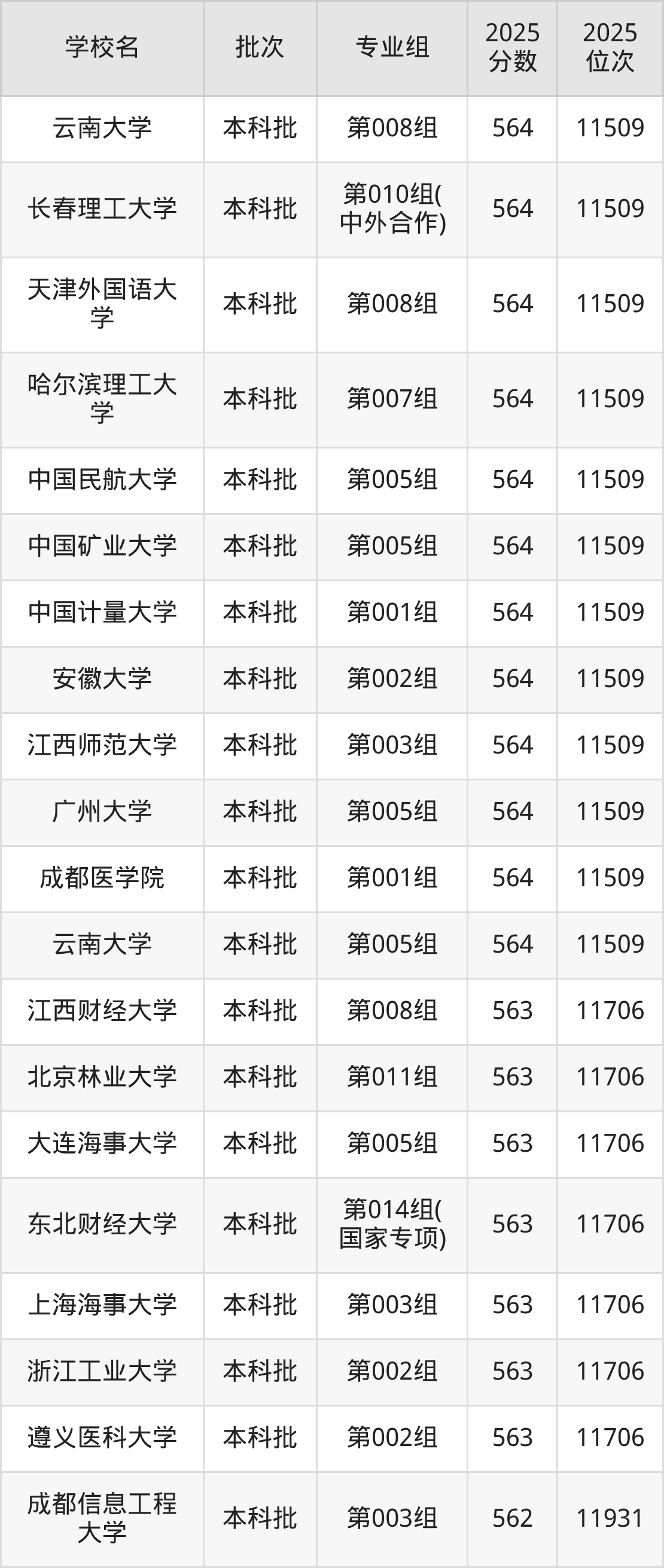 这些都是2026年高考物理类11510名~11706名考生可以报考的大学,更多学校名单如下表所示: