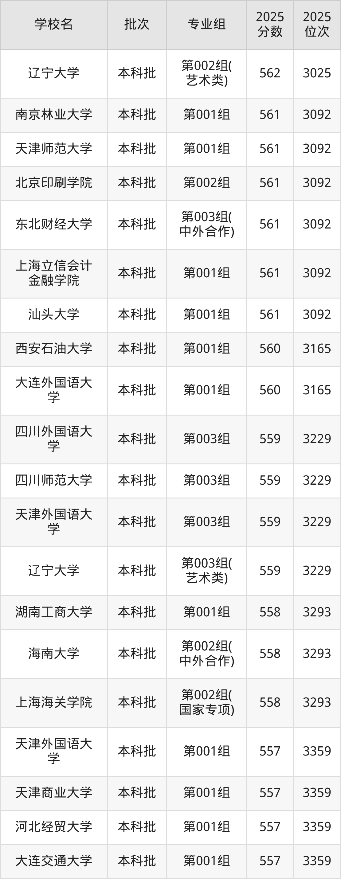 另外录取位次低于该区间(较稳妥)的有东北财经大学第004组(中外合作)(3025名)、辽宁大学第002组(艺术类)(3025名)等;录取位次高于该区间(可冲)的有湖北中医药大学第001组(2894名)、东北农业大学第001组(2894名)等。