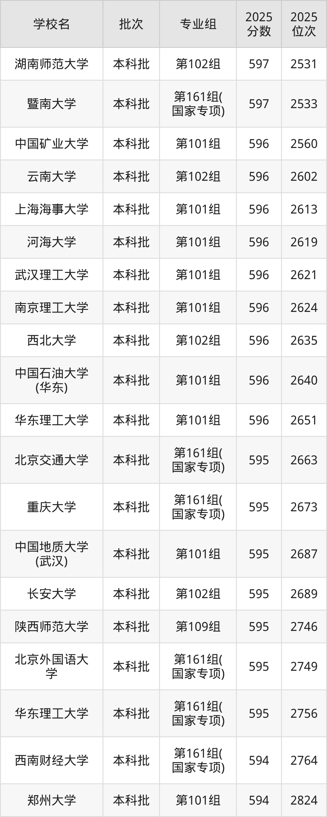 这些都是2026年高考历史类3010名~3125名考生可以报考的大学,更多学校名单如下表所示: