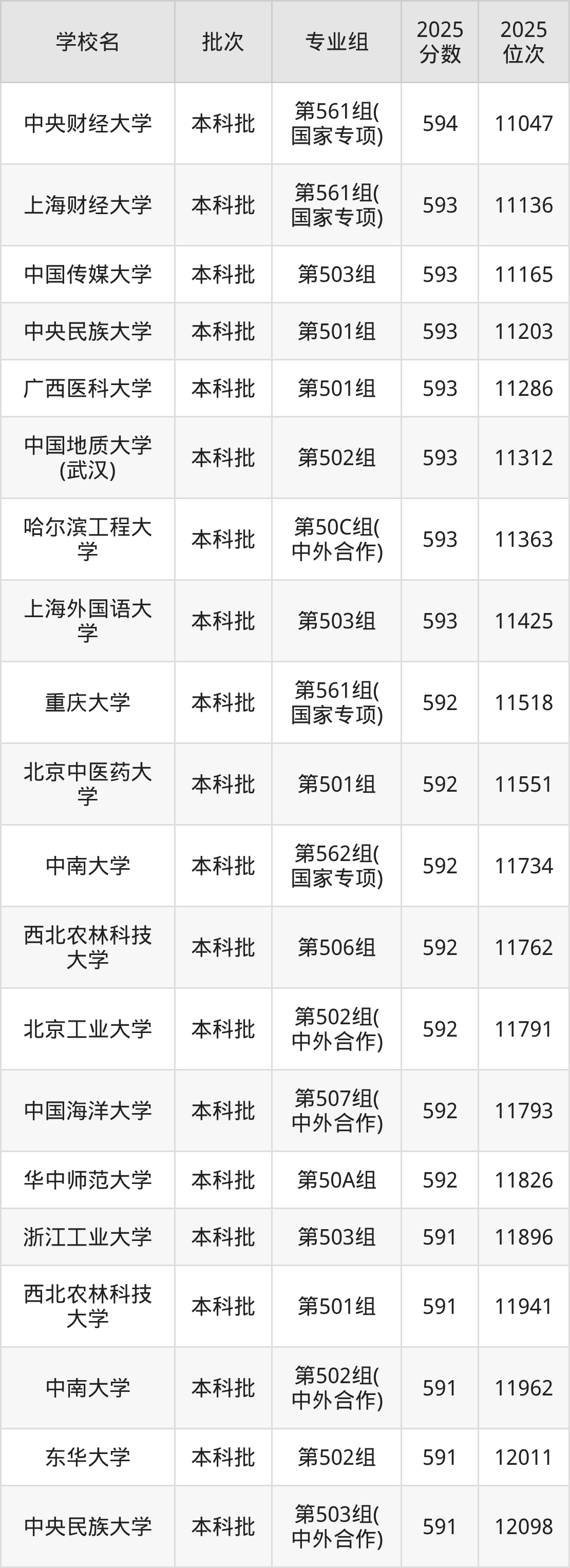 2025年江西高考物理类592分(11497名~11893名)能上的大学有华中师范大学第50A组、北京中医药大学第501组、北京工业大学第502组(中外合作)、中国海洋大学第507组(中外合作)等。