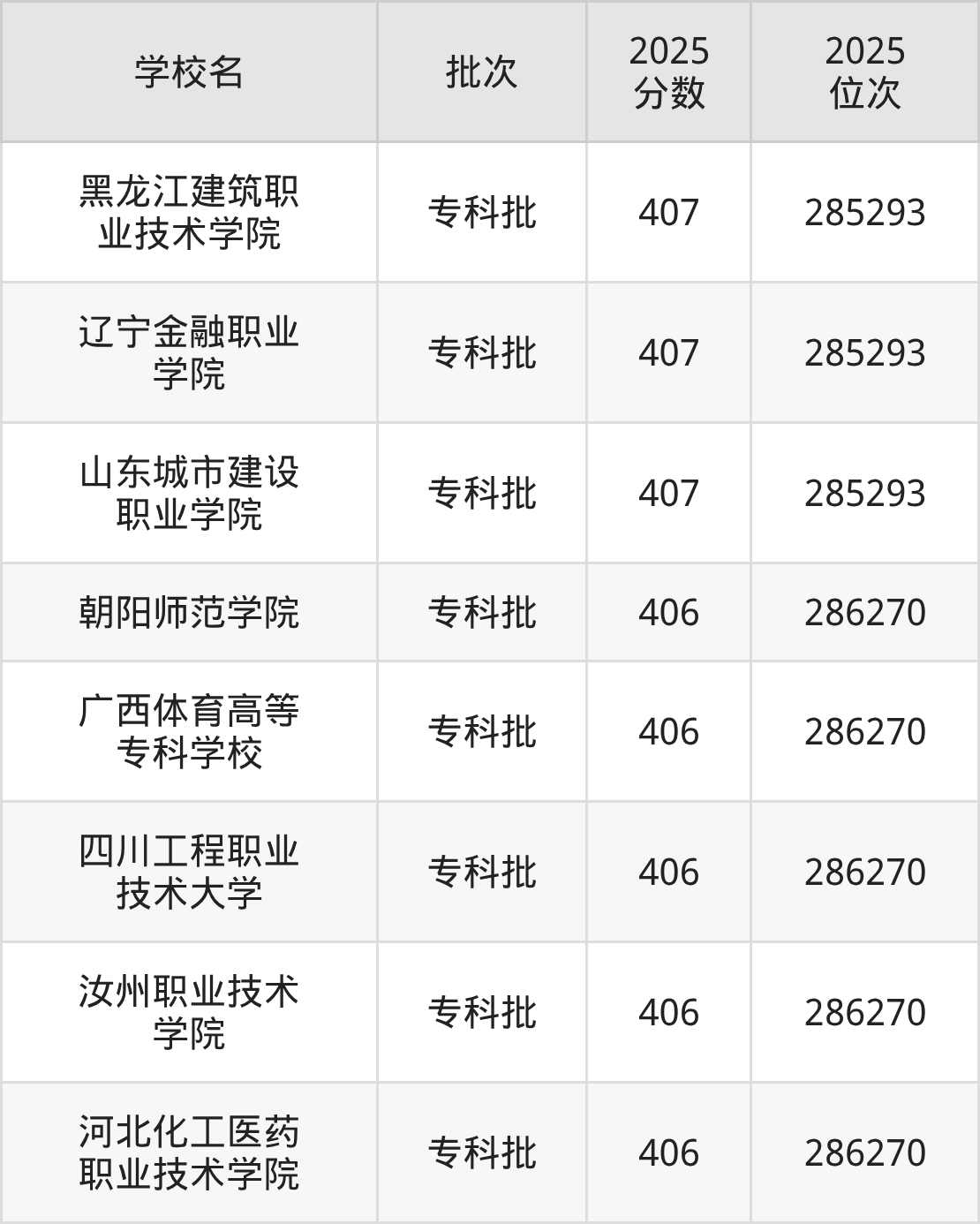 2025年河北高考物理类406分(285294名~286270名)能上的大学有朝阳师范学院、河北化工医药职业技术学院、汝州职业技术学院、四川工程职业技术大学等。