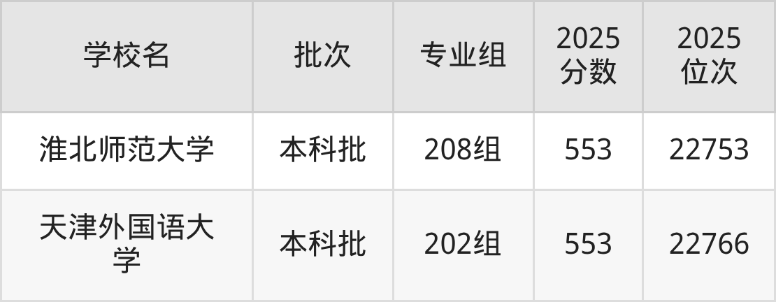 这些都是2026年高考历史类21789名~22300名考生可以报考的大学,更多学校名单如下表所示:
