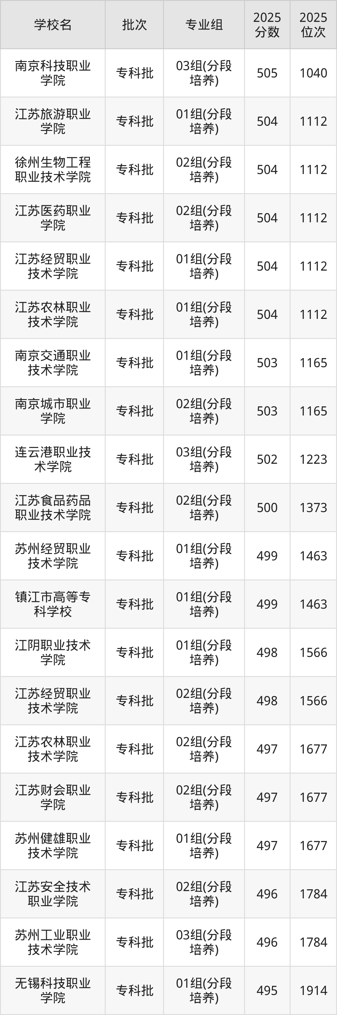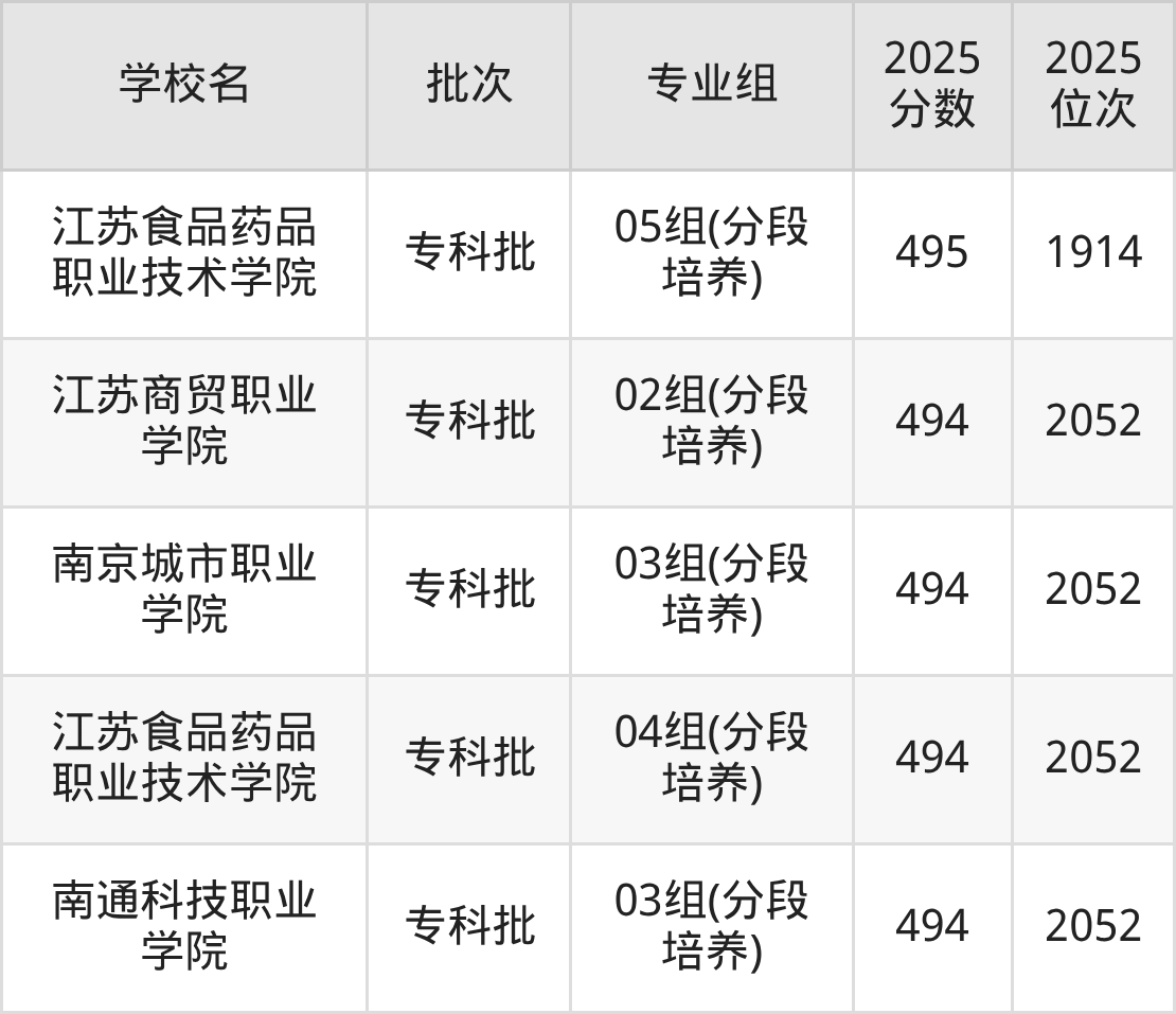 另外录取位次低于该区间(较稳妥)的有江苏农林职业技术学院02组(分段培养)(1677名)、江苏财会职业学院02组(分段培养)(1677名)等;录取位次高于该区间(可冲)的有西安交通大学城市学院01组(48117名)、重庆人文科技学院01组(48117名)等。