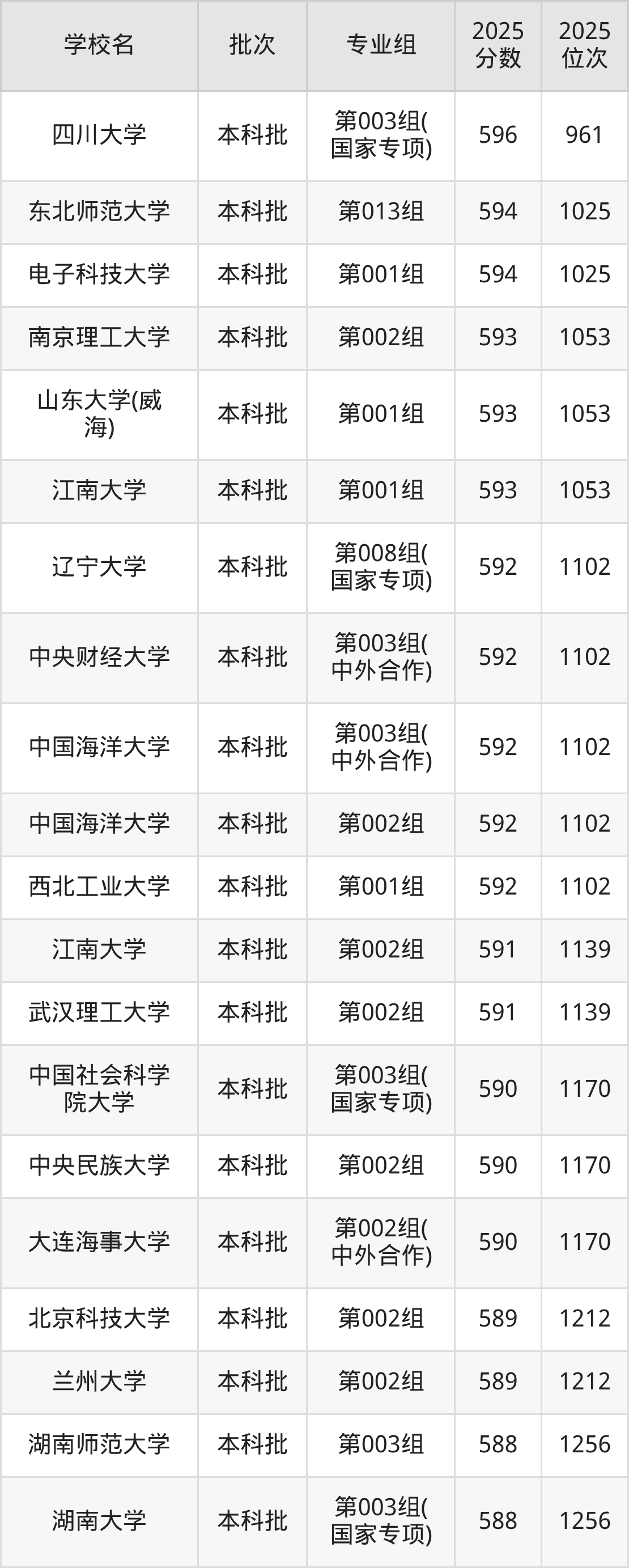 2025年黑龙江高考历史类588分(1213名~1256名)能上的大学有湖南大学第003组(国家专项)、湖南师范大学第003组。