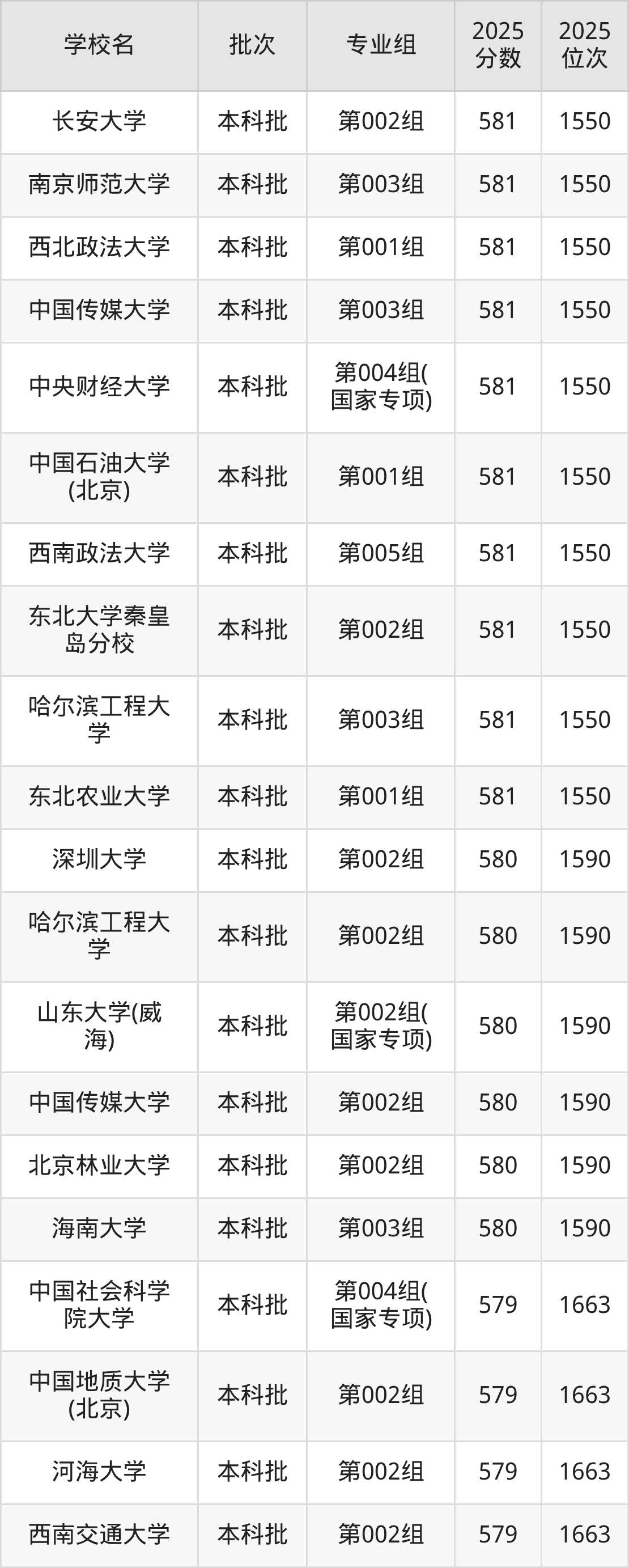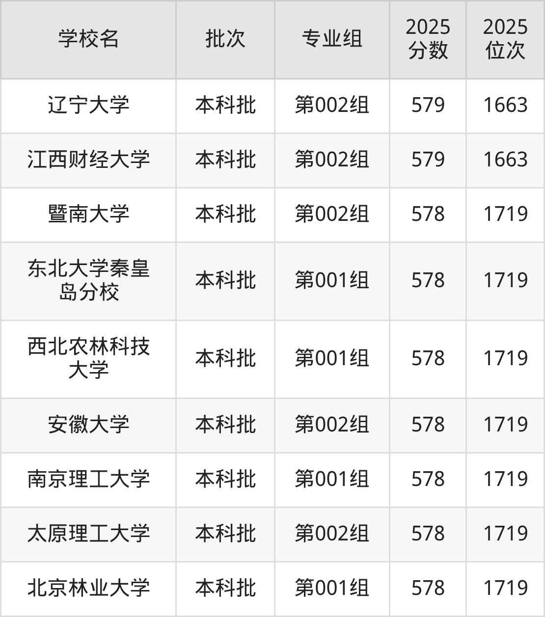 由于高考录取分数线历年波动较大,因此本文以该分数对应的位次排名为大家整理能上的大学名单。