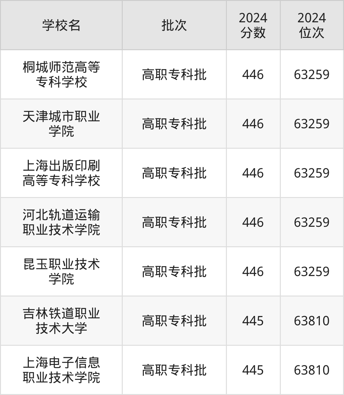 2024年云南高考文科445分(63260名~63810名)能上的大学有吉林铁道职业技术大学、上海电子信息职业技术学院。