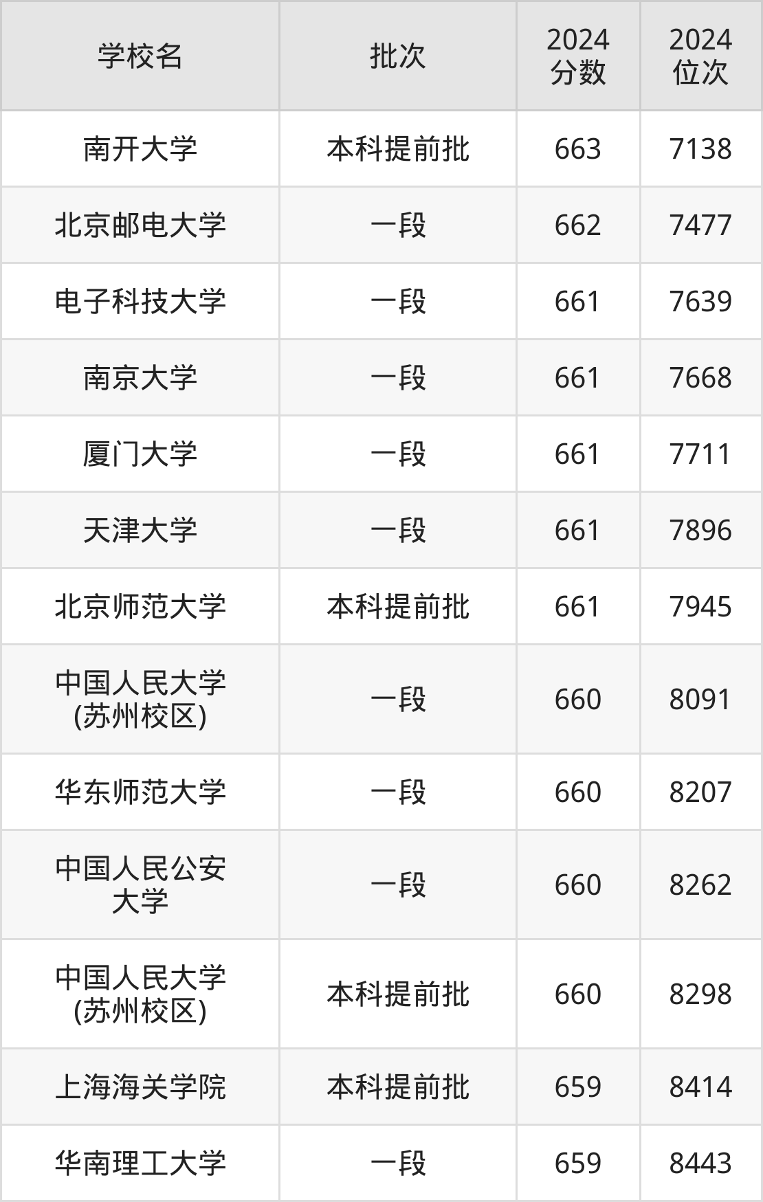 2024年浙江高考661分(7567名~7951名)能上的大学有北京师范大学、电子科技大学、天津大学、厦门大学等。
