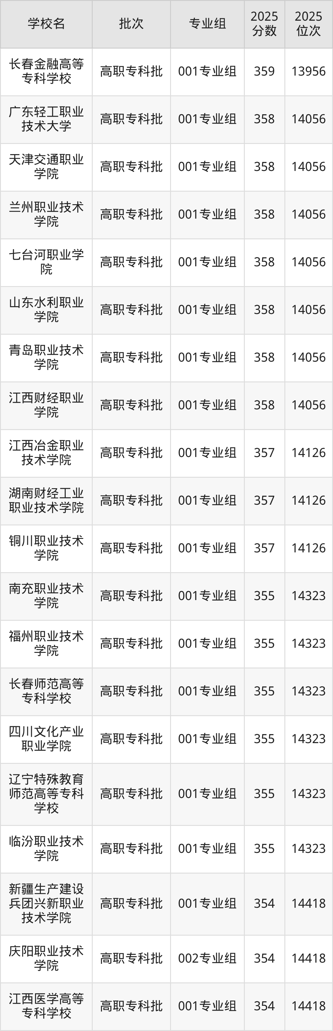 2025年宁夏高考历史类357分(14057名~14126名)能上的大学有江西冶金职业技术学院001专业组、湖南财经工业职业技术学院001专业组、铜川职业技术学院001专业组。
