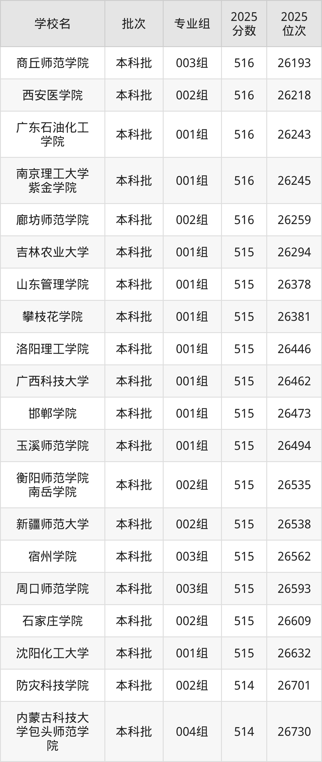 这些都是2026年高考物理类113546名~114928名考生可以报考的大学,更多学校名单如下表所示: