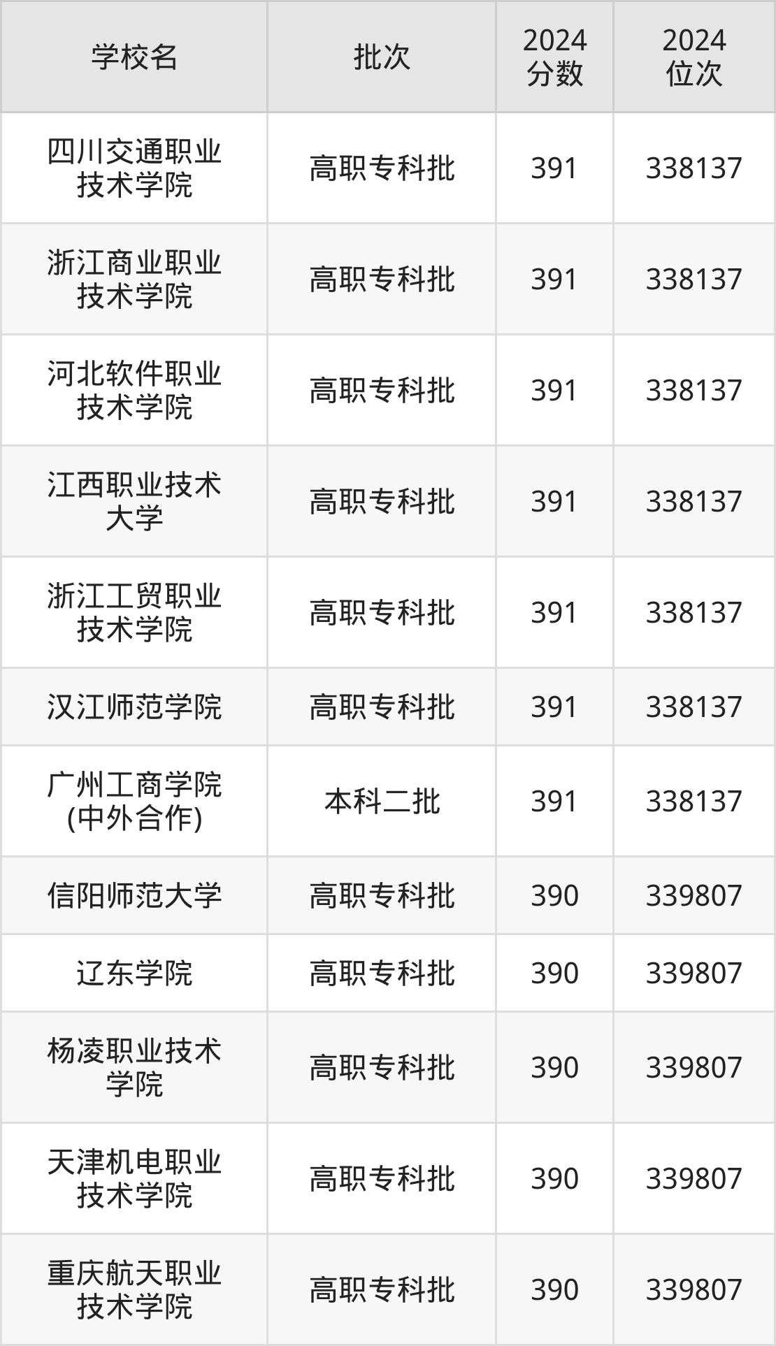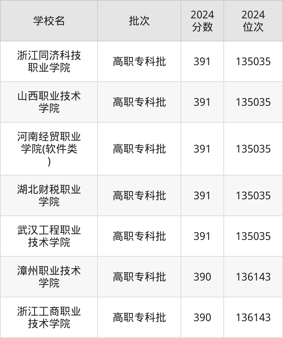2024年河南高考文科390分(135036名~136143名)能上的大学有浙江工商职业技术学院、漳州职业技术学院。