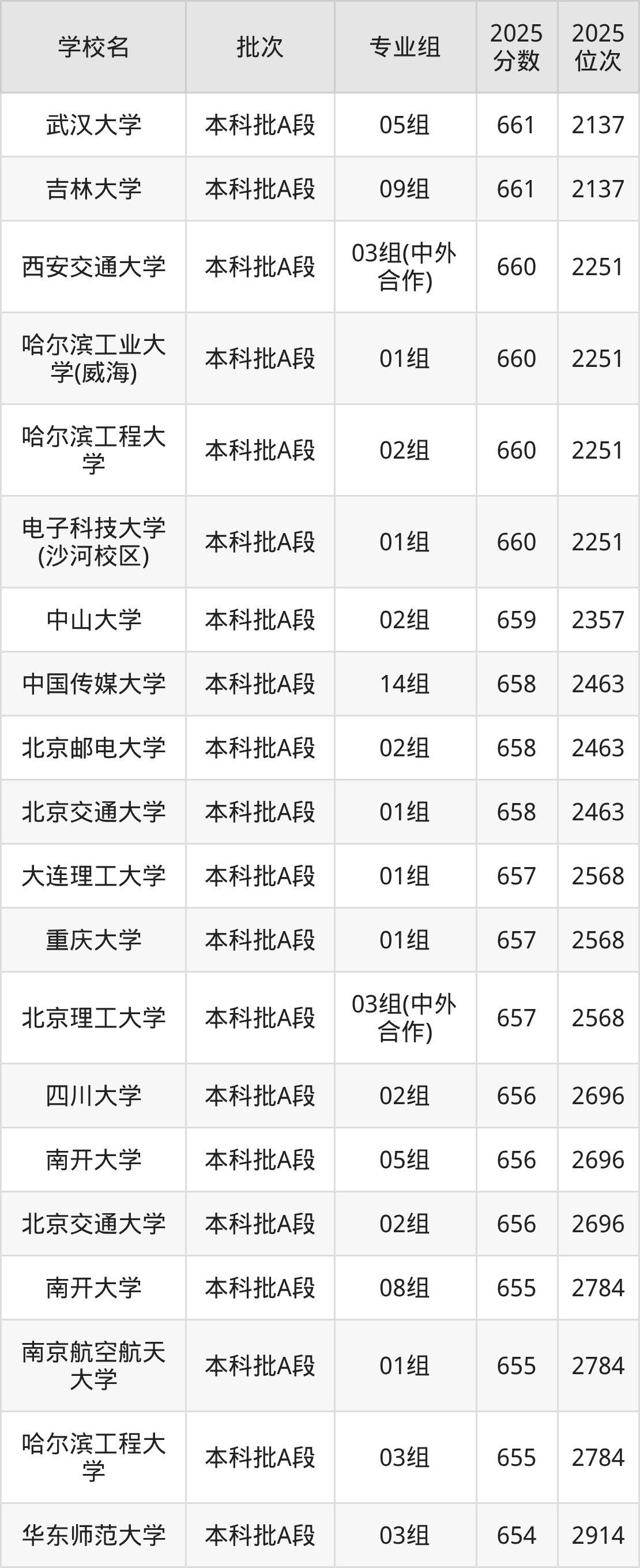 2025年天津高考656分(2569名~2696名)能上的大学有北京交通大学02组、南开大学05组、四川大学02组。