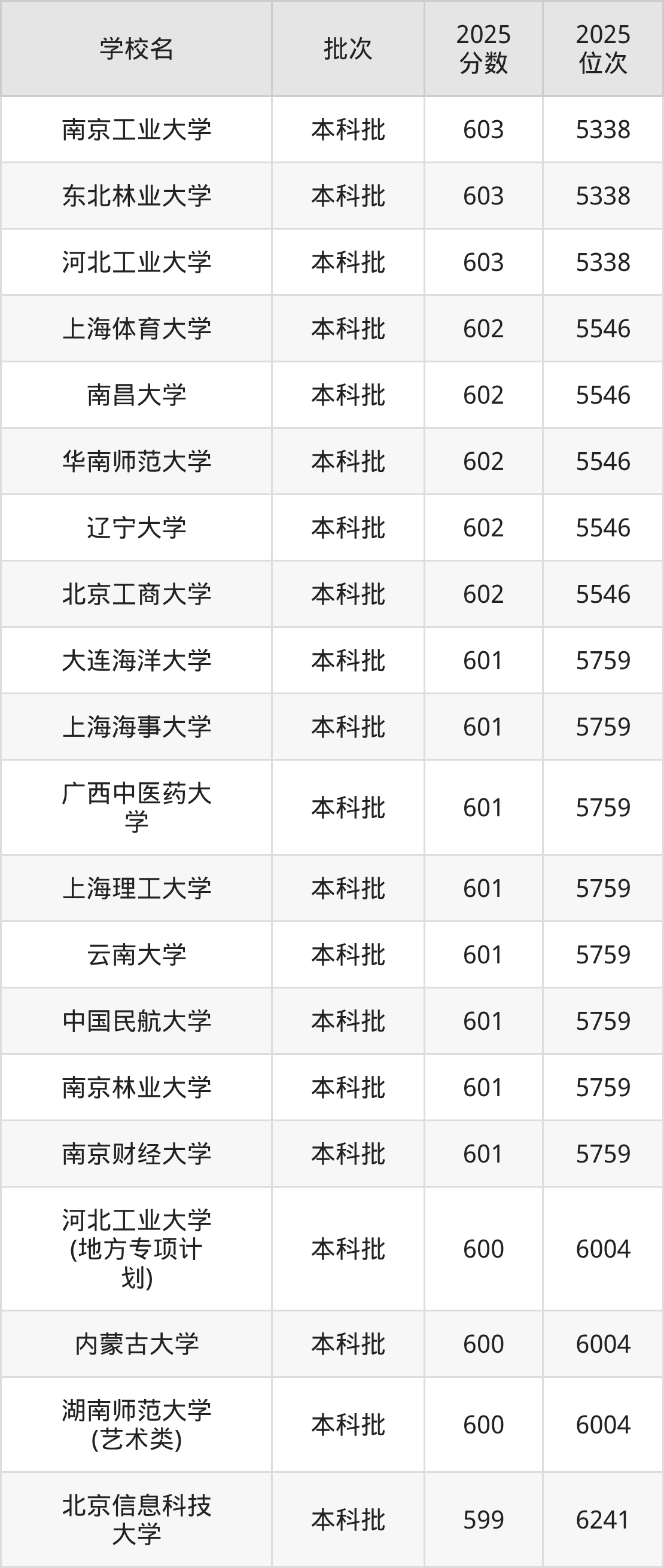 2025年河北高考历史类600分(5760名~6004名)能上的大学有河北工业大学(地方专项计划)、内蒙古大学、湖南师范大学(艺术类)。