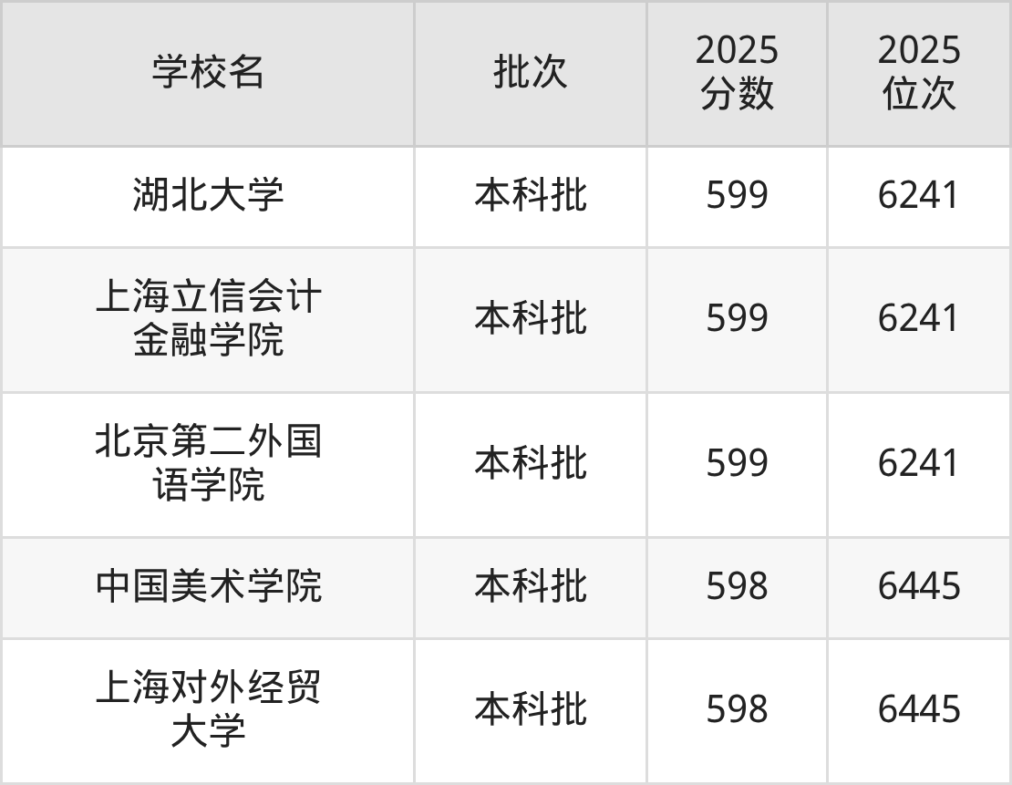 这些都是2026年高考历史类5760名~6004名考生可以报考的大学,更多学校名单如下表所示: