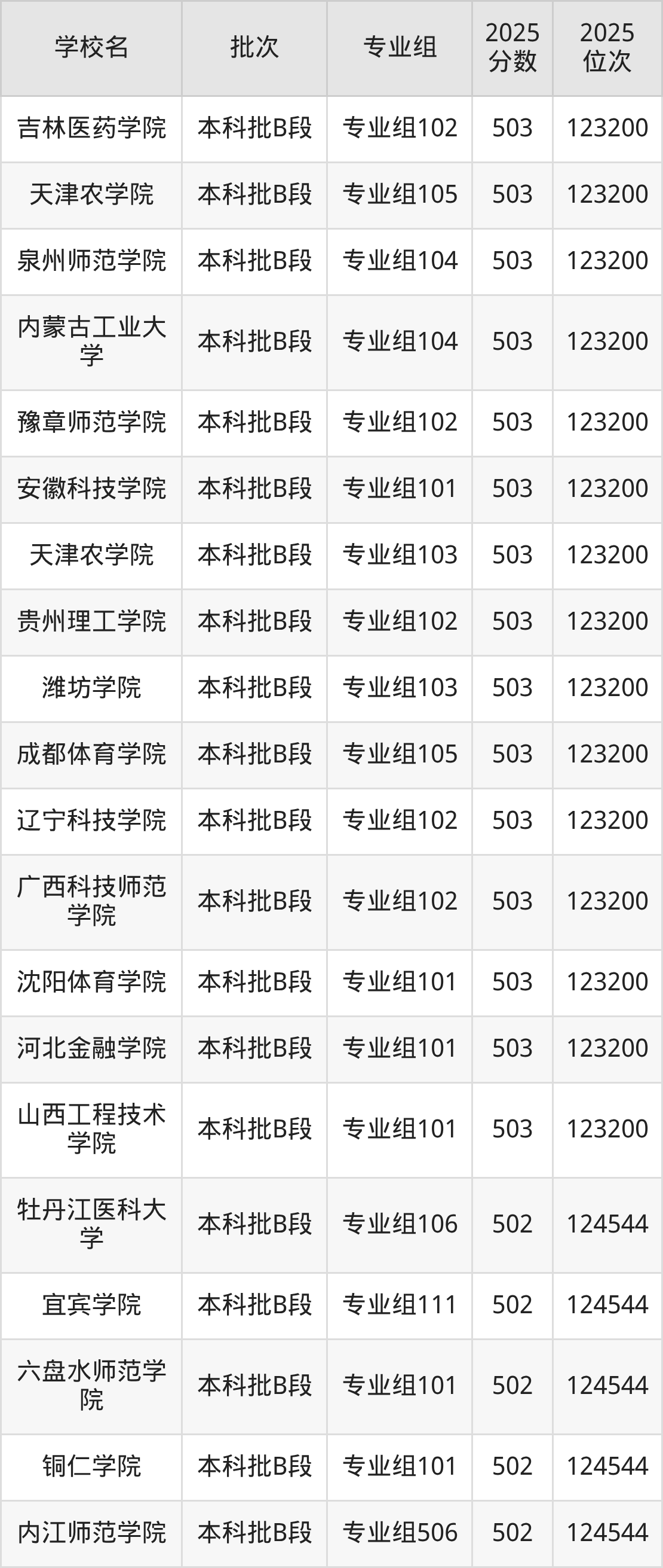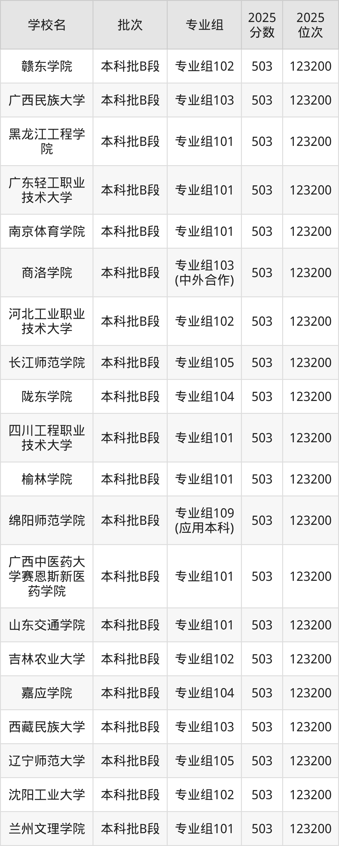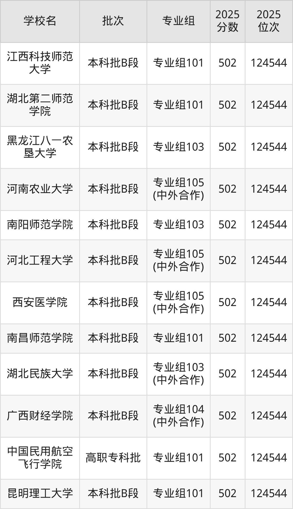 这些都是2026年高考物理类123201名~124544名考生可以报考的大学,更多学校名单如下表所示: