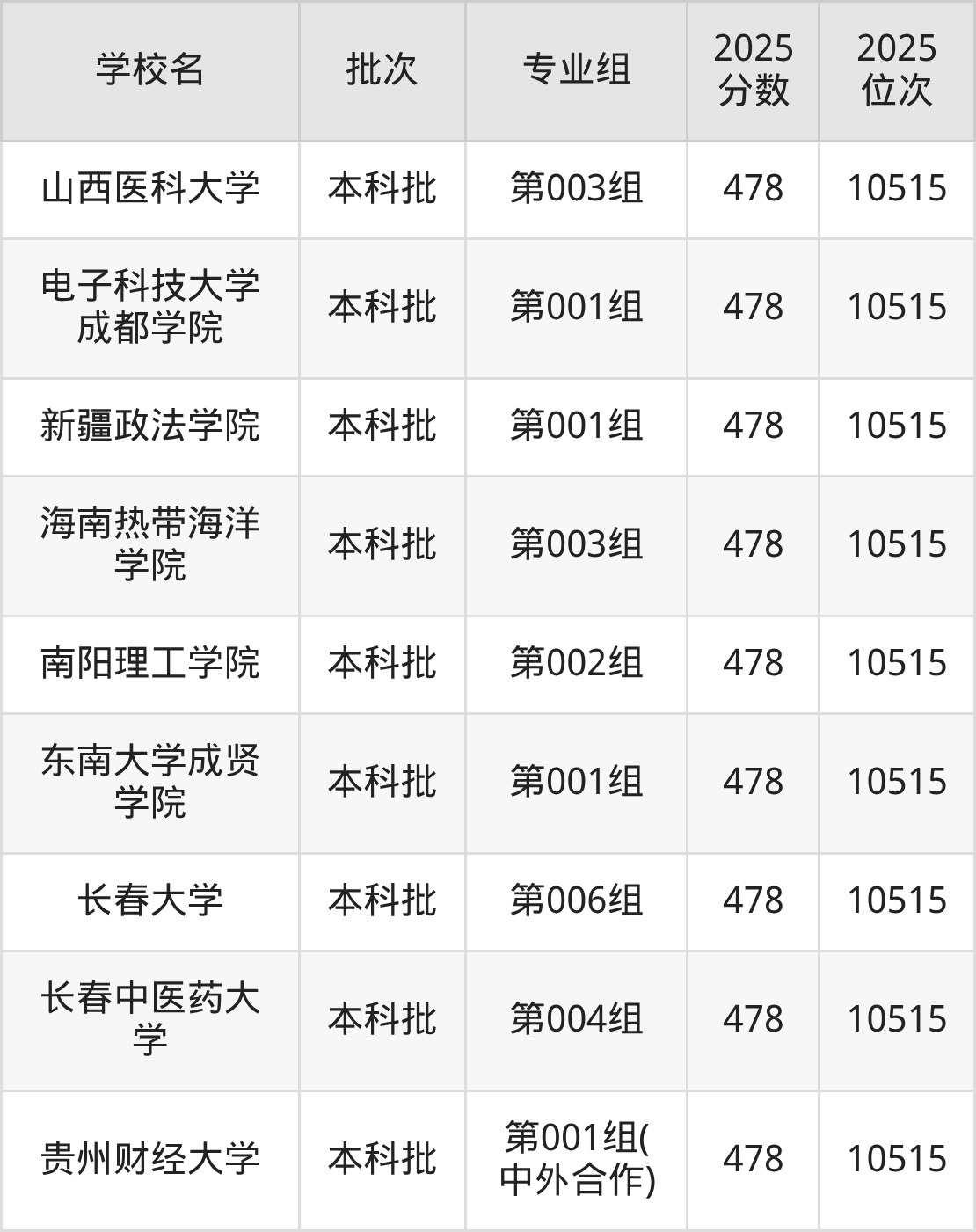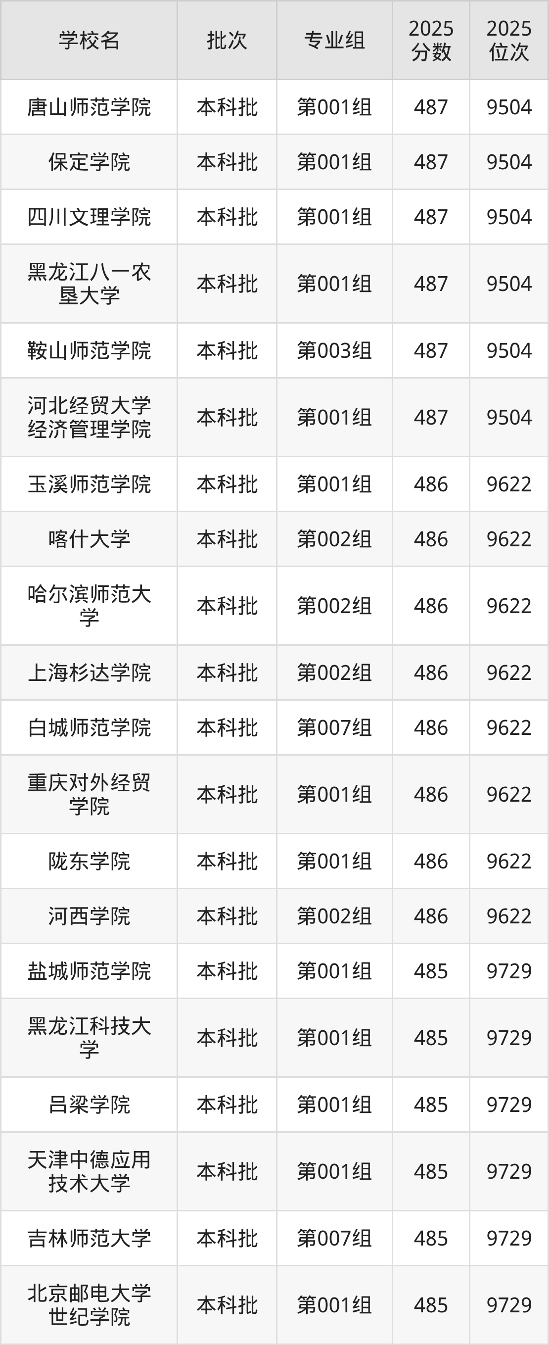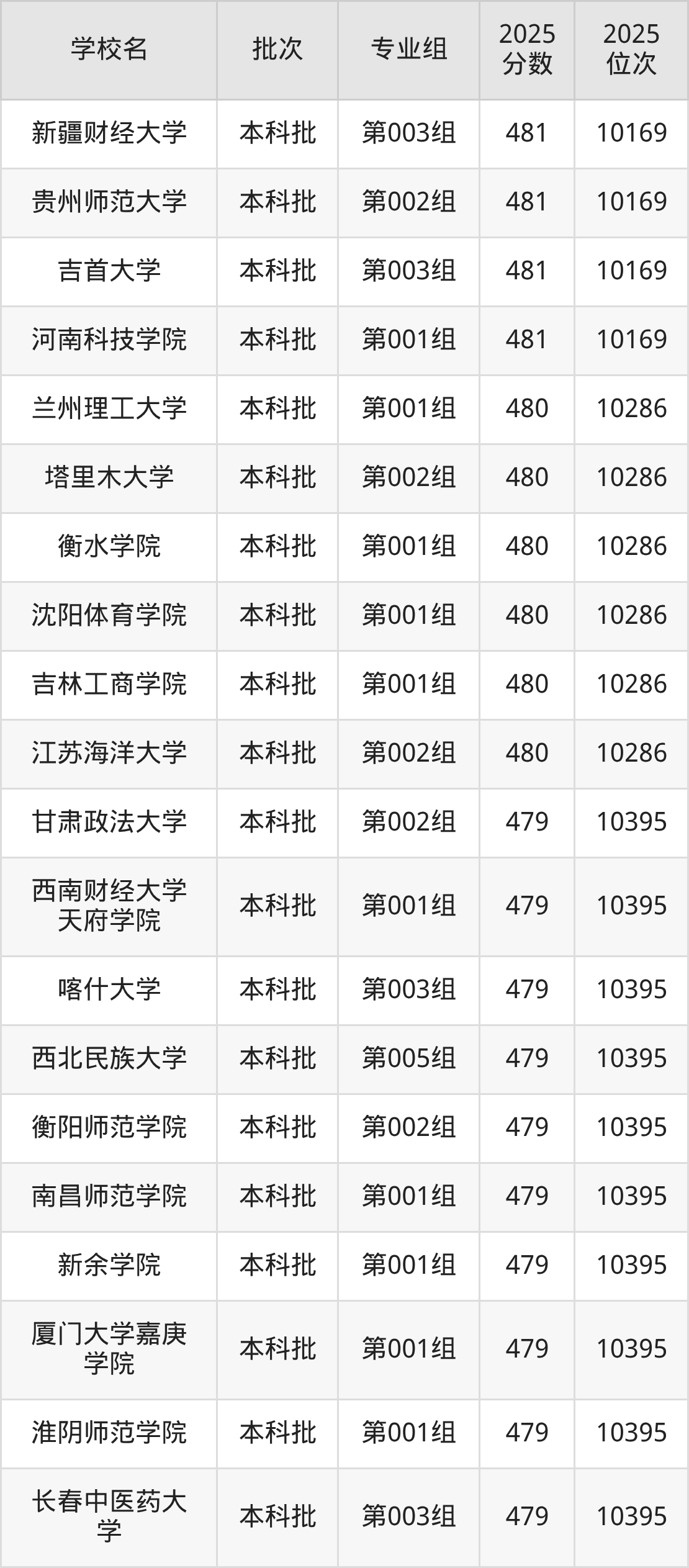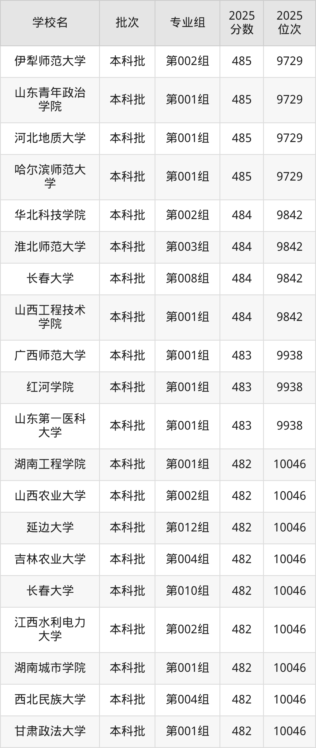 2025年吉林高考历史类482分(9939名~10046名)能上的大学有山西农业大学第002组、延边大学第012组、吉林农业大学第004组、长春大学第010组等。