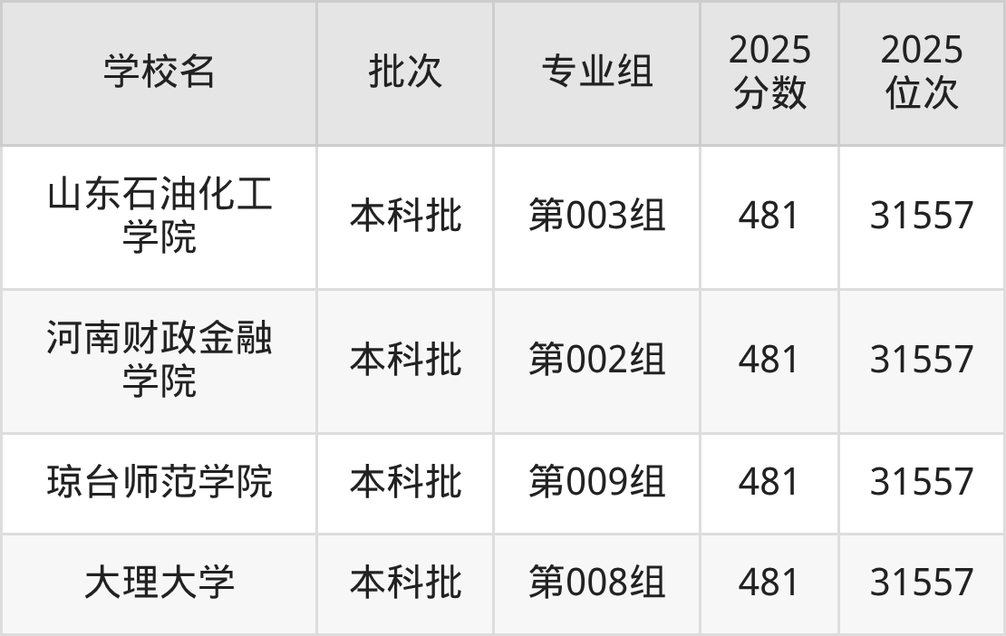 这些都是2026年高考历史类9939名~10046名考生可以报考的大学,更多学校名单如下表所示: