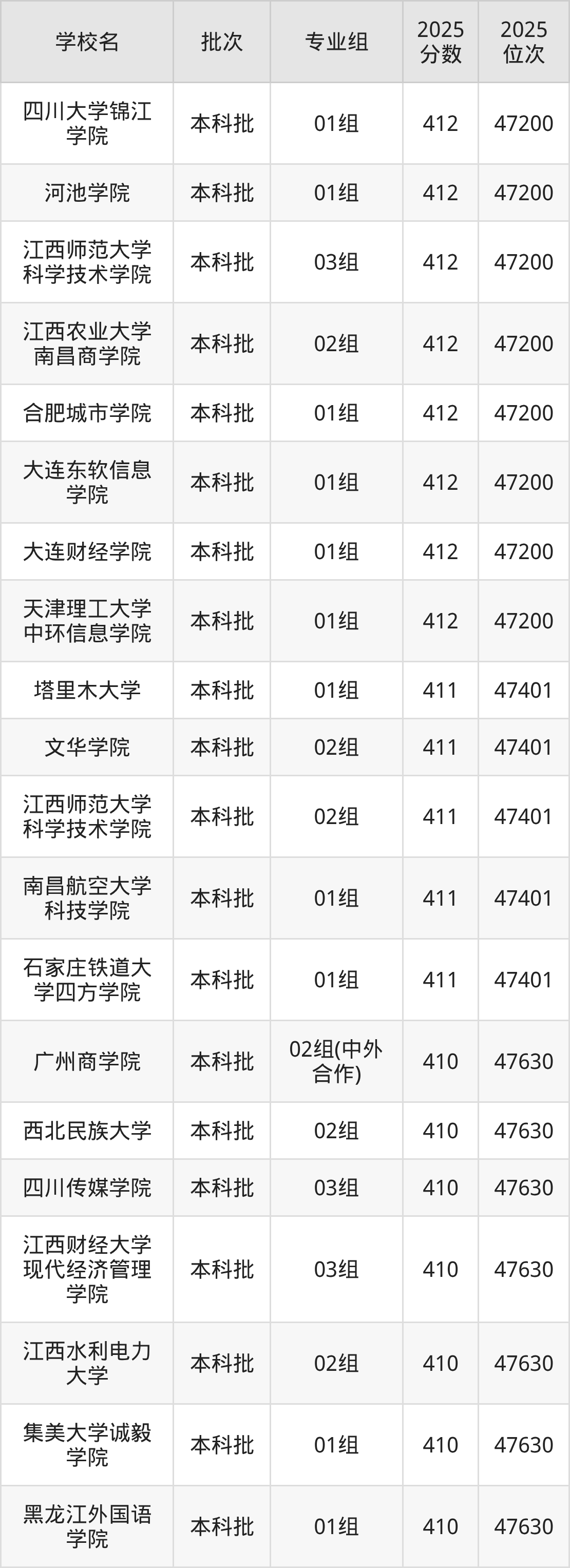 这些都是2026年高考47631名~47844名考生可以报考的大学,更多学校名单如下表所示: