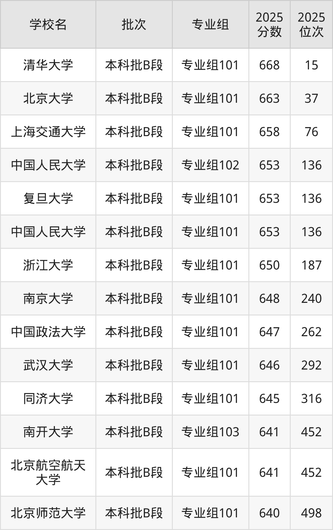 2025年四川高考历史类663分(31名~37名)能上的大学有北京大学专业组101。