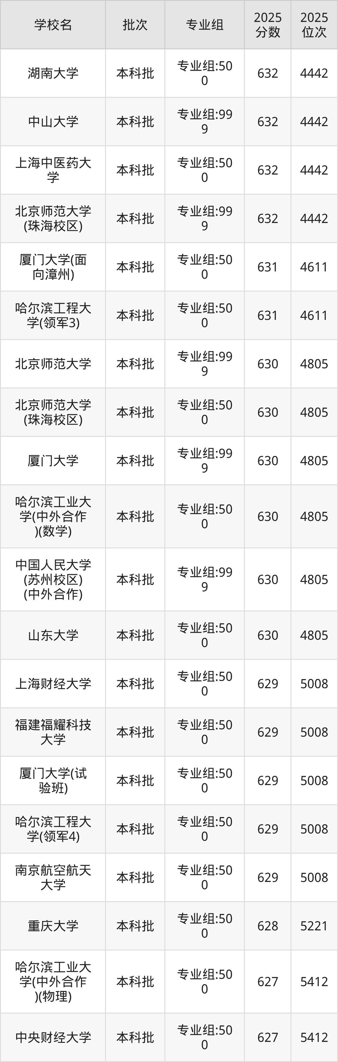 另外录取位次低于该区间(较稳妥)的有重庆大学专业组:500(5221名)、哈尔滨工业大学(中外合作)(物理)专业组:500(5412名)等;录取位次高于该区间(可冲)的有中国人民大学(苏州校区)(中外合作)专业组:999(4805名)、厦门大学专业组:999(4805名)等。