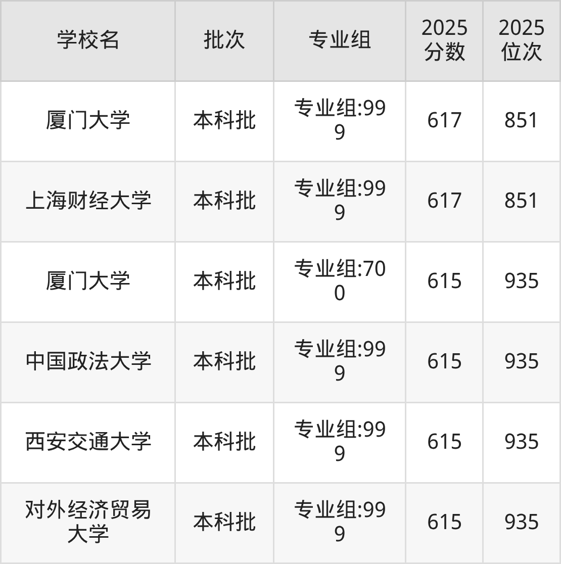 另外录取位次低于该区间(较稳妥)的有中山大学专业组:999(536名)、中山大学专业组:700(567名)等;录取位次高于该区间(可冲)的有北京师范大学专业组:999(416名)、北京师范大学专业组:700(304名)等。
