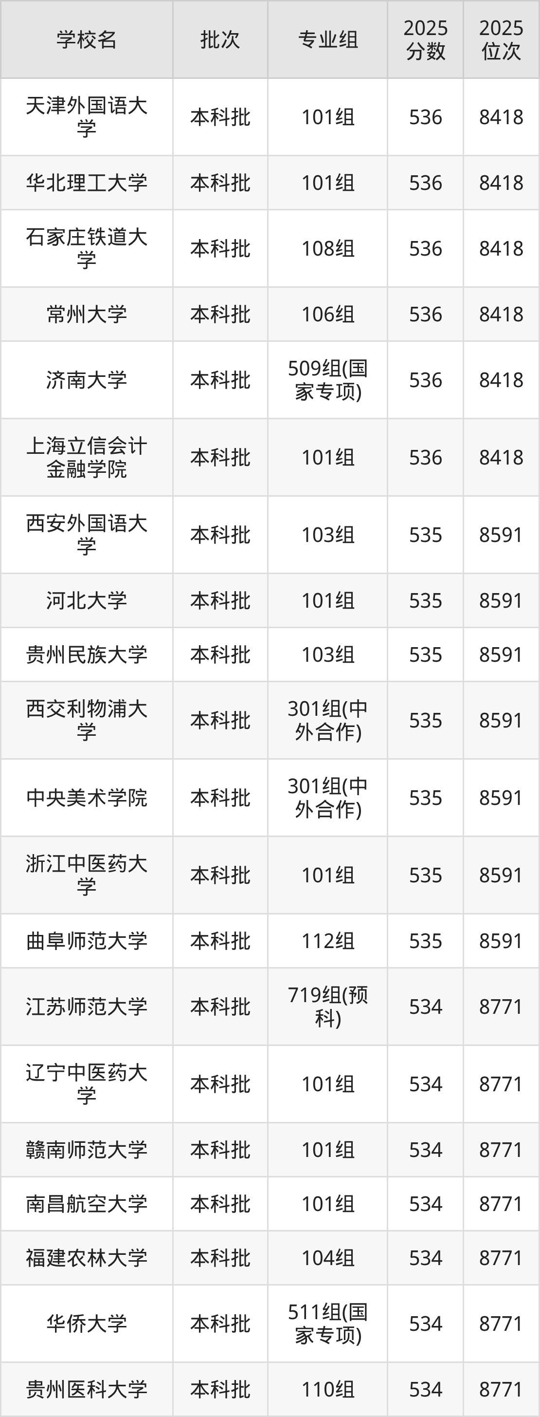 这些都是2026年高考历史类8772名~8960名考生可以报考的大学,更多学校名单如下表所示: