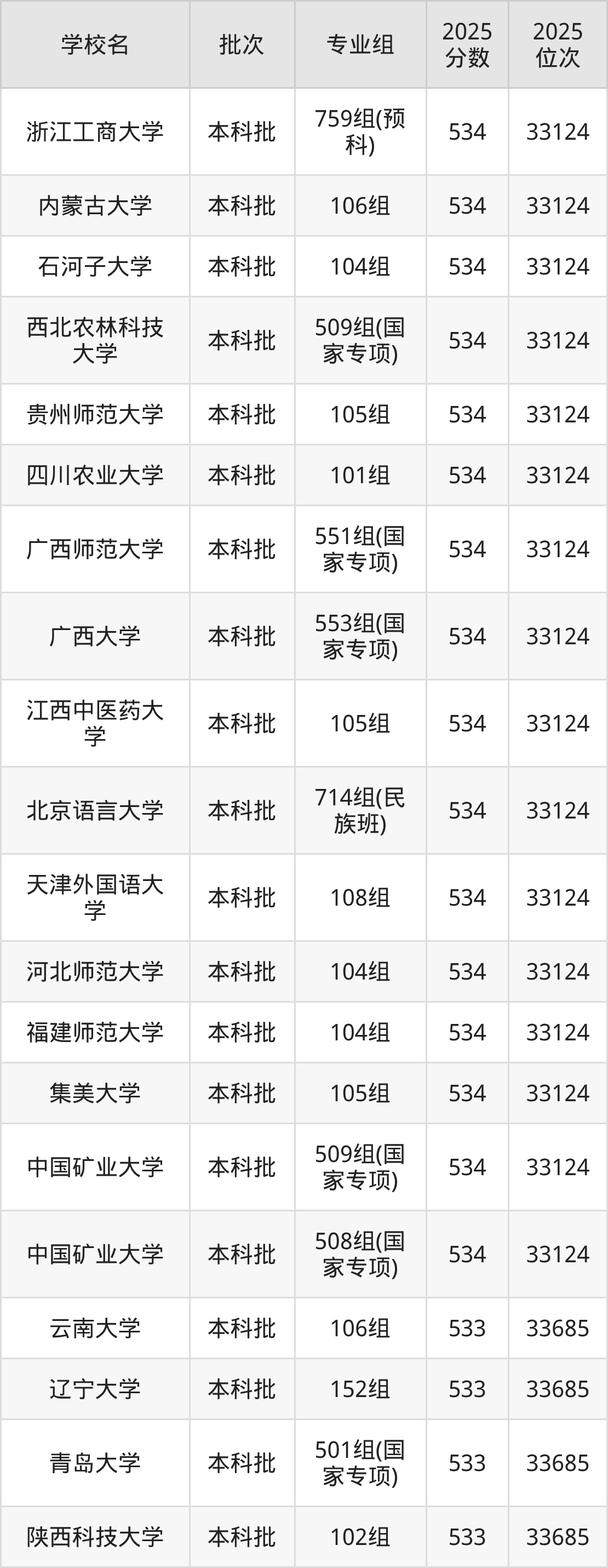 二、广西533分位次排名能上的大学