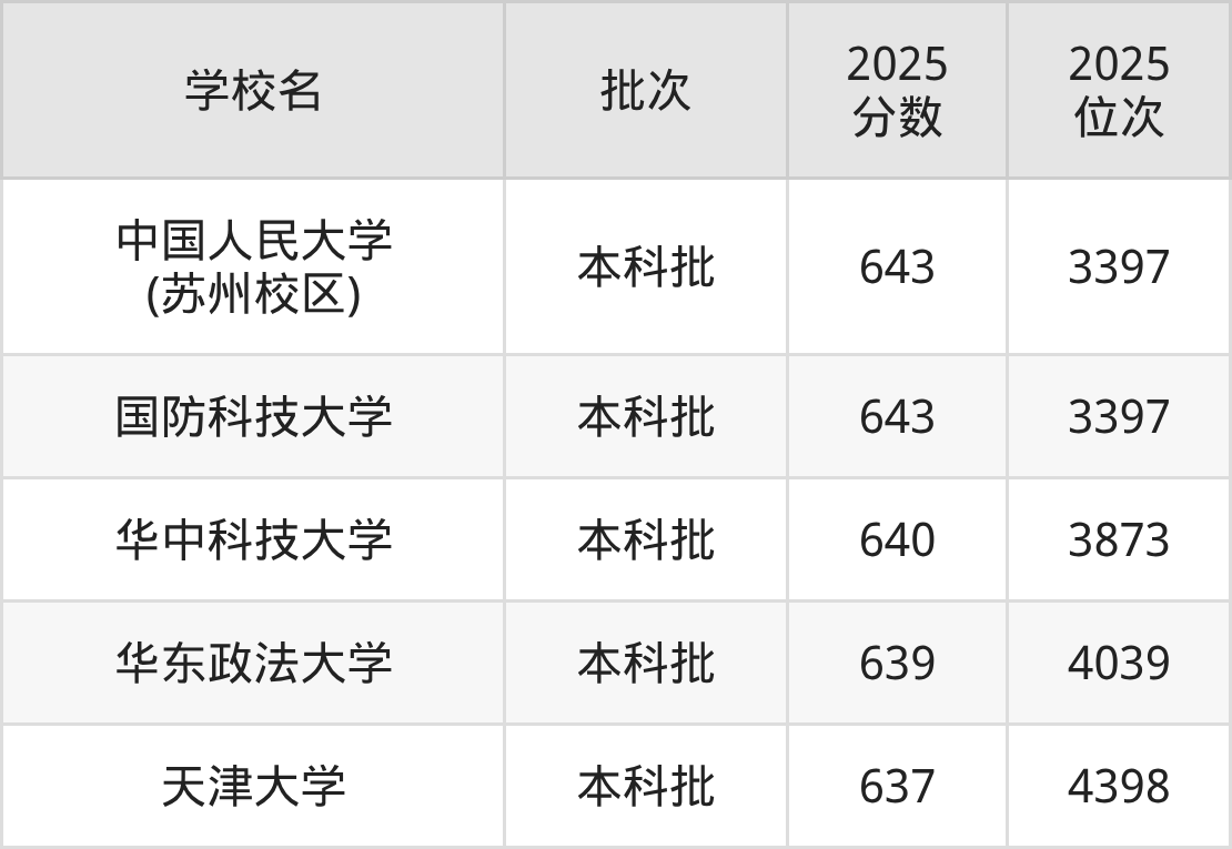 辽宁高考639分:历史类排名291位、物理类排名4039位。该分数位次对应能上的大学历史类有南开大学、武汉大学;物理类有华东政法大学,更多名单如下文所示,2026届考生可参考。