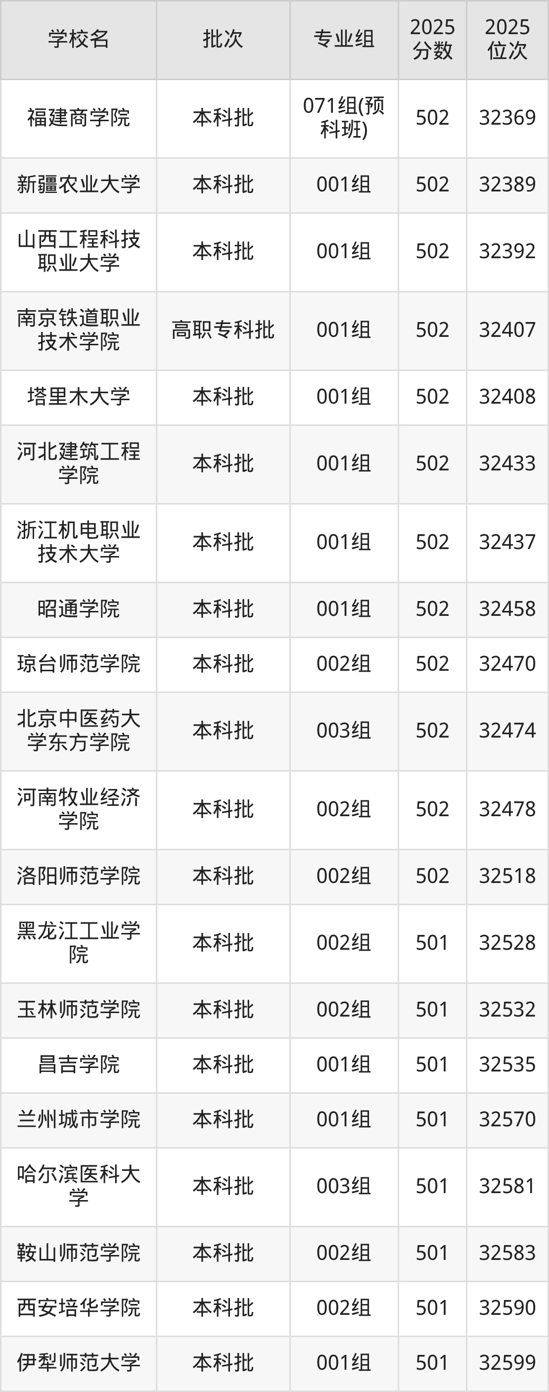 另外录取位次低于该区间(较稳妥)的有新疆科技学院001组(32983名)、重庆人文科技学院001组(33022名)等;录取位次高于该区间(可冲)的有洛阳师范学院002组(32518名)、河南牧业经济学院002组(32478名)等。