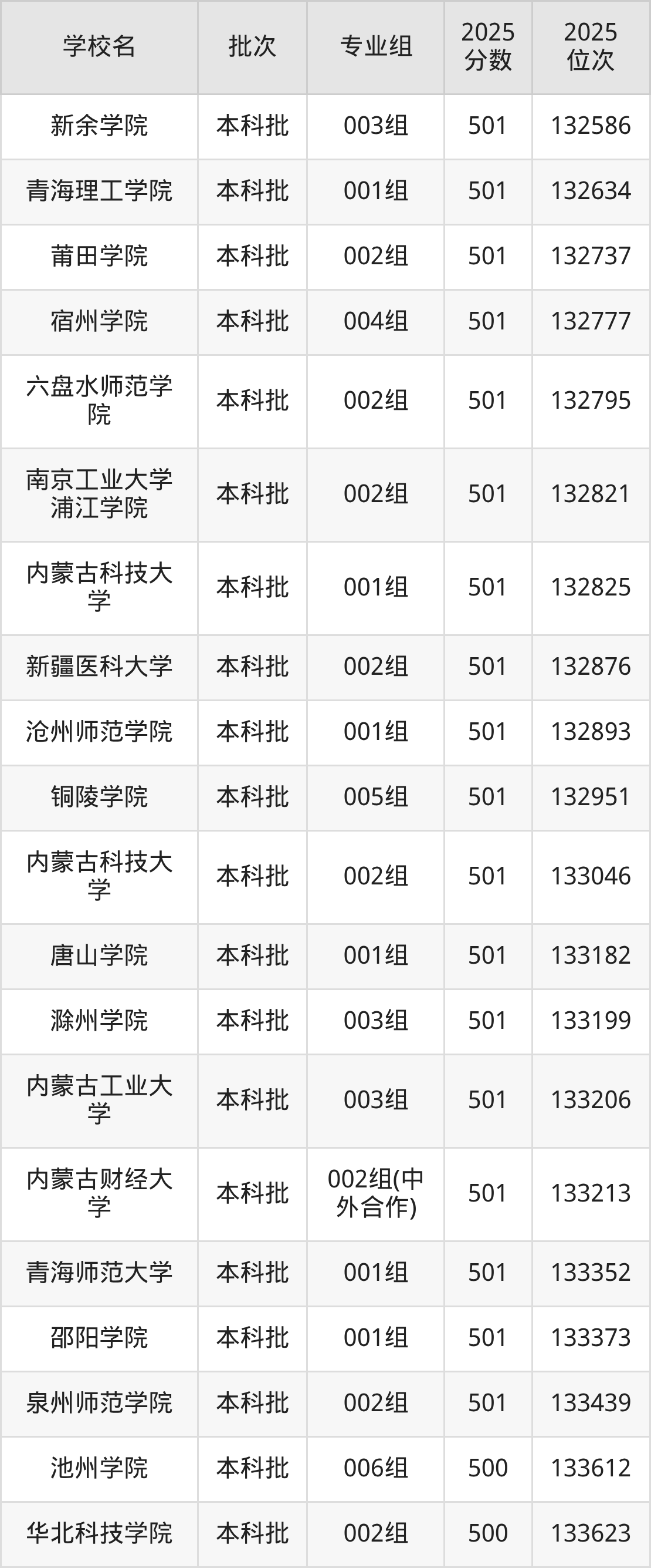 这些都是2026年高考物理类132120名~133575名考生可以报考的大学,更多学校名单如下表所示: