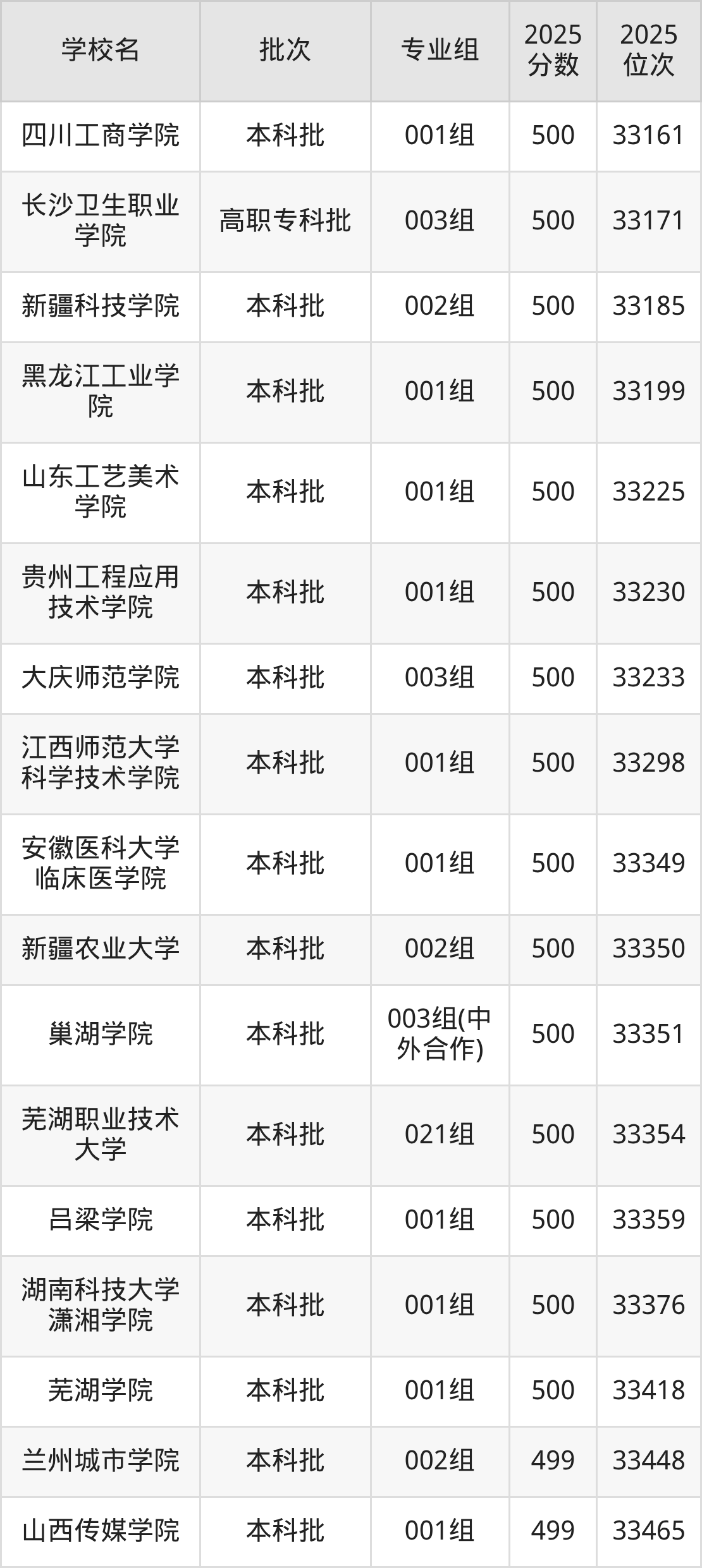 2025年安徽高考历史类501分(32522名~32982名)能上的大学有鞍山师范学院002组、昌吉学院001组、长治学院002组、大庆师范学院002组等。