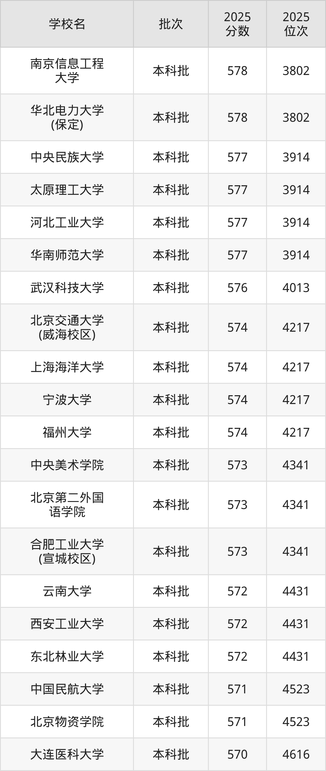 这些都是2026年高考历史类4218名~4341名考生可以报考的大学,更多学校名单如下表所示: