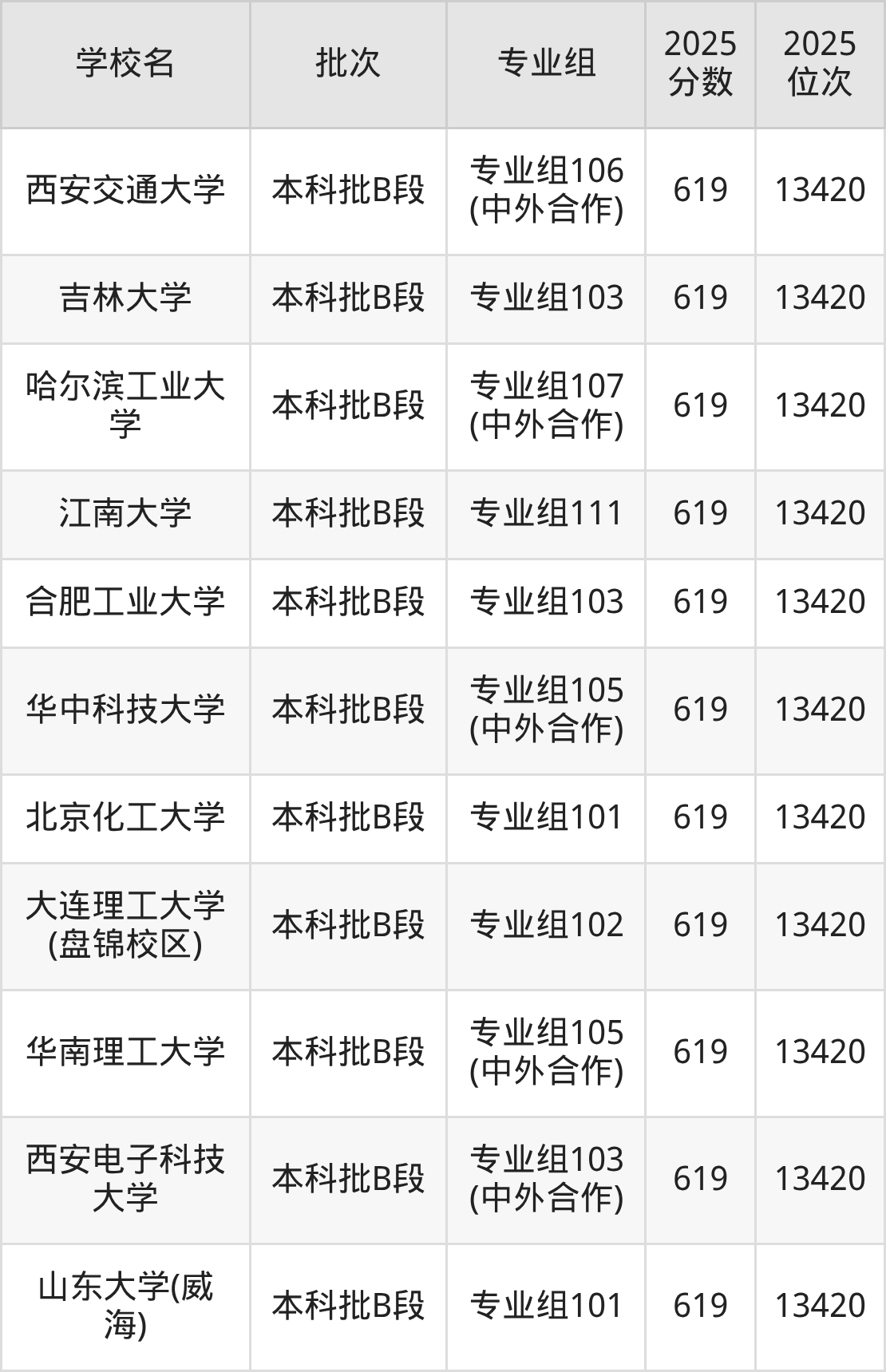 另外录取位次低于该区间(较稳妥)的有山东大学(威海)专业组101(13420名)、哈尔滨工业大学专业组107(中外合作)(13420名)等;录取位次高于该区间(可冲)的有深圳大学专业组103(12558名)、华中科技大学专业组103(12558名)等。