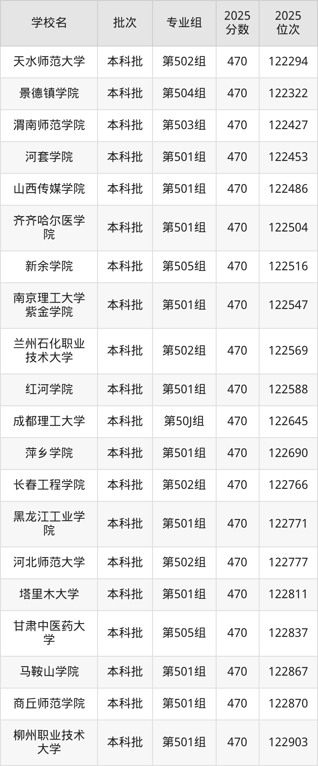 这些都是2026年高考物理类122119名~123427名考生可以报考的大学,更多学校名单如下表所示:
