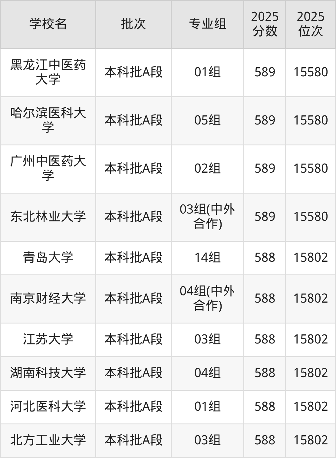 这些都是2026年高考15123名~15350名考生可以报考的大学,更多学校名单如下表所示: