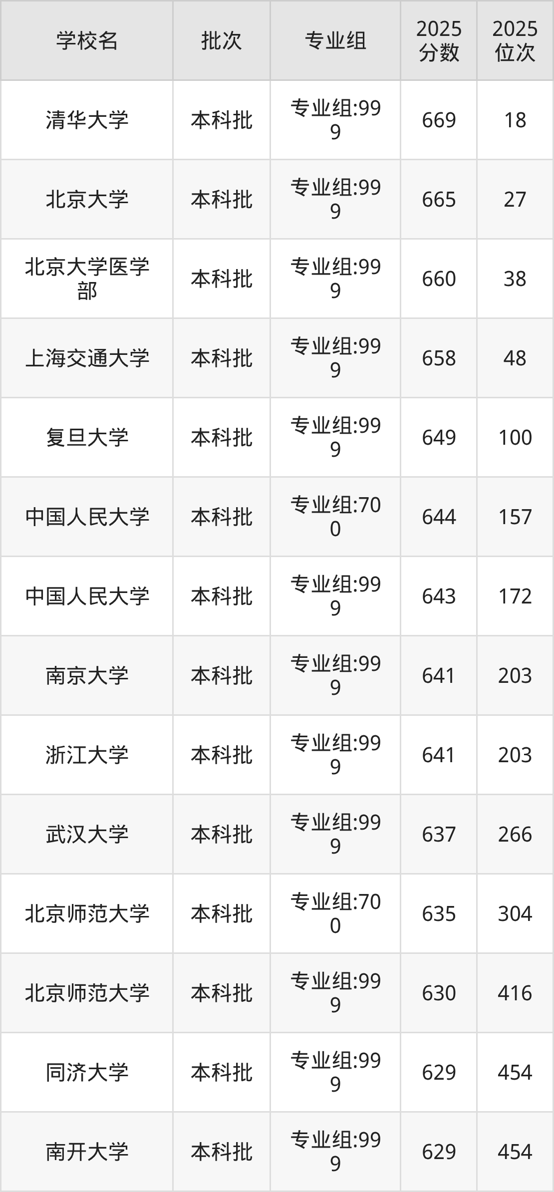 2025年福建高考历史类661分(32名~34名)录取位次低于该区间(较稳妥)的有北京大学医学部专业组:999(38名)、上海交通大学专业组:999(48名)等;录取位次高于该区间(可冲)的有北京大学专业组:999(27名)、清华大学专业组:999(18名)。