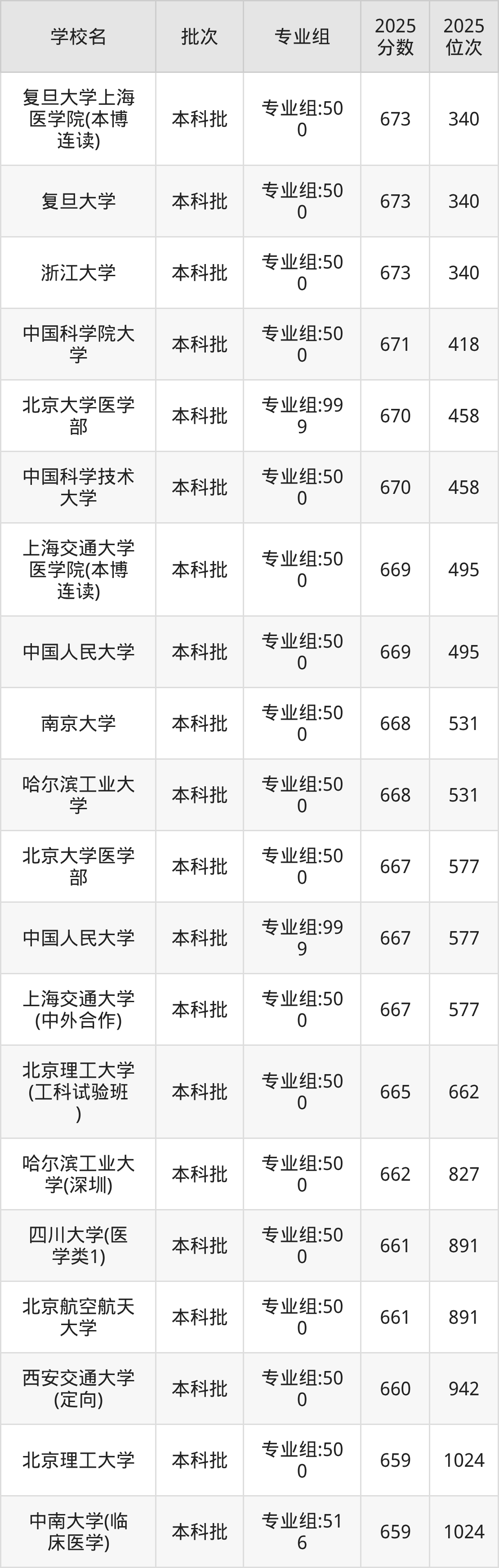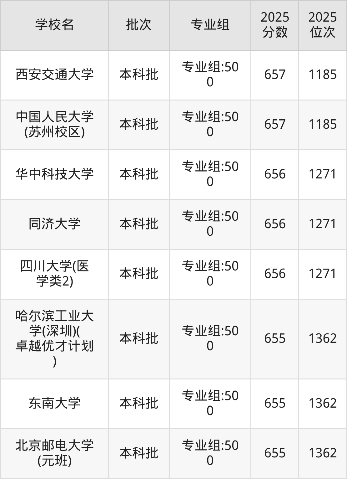 另外录取位次低于该区间(较稳妥)的有西安交通大学(定向)专业组:500(942名)、中南大学(临床医学)专业组:516(1024名)等;录取位次高于该区间(可冲)的有哈尔滨工业大学(深圳)专业组:500(827名)、北京理工大学(工科试验班)专业组:500(662名)等。