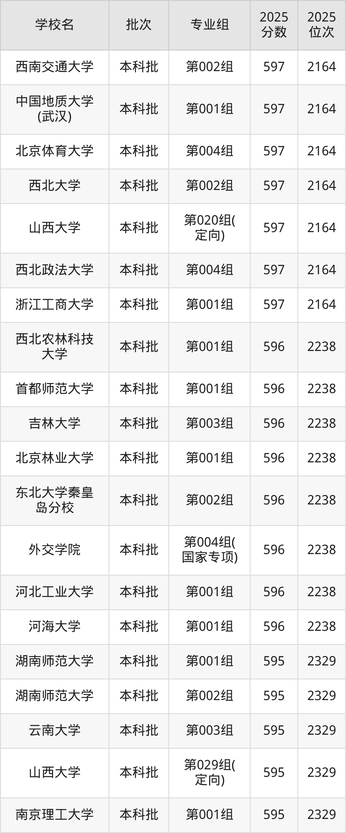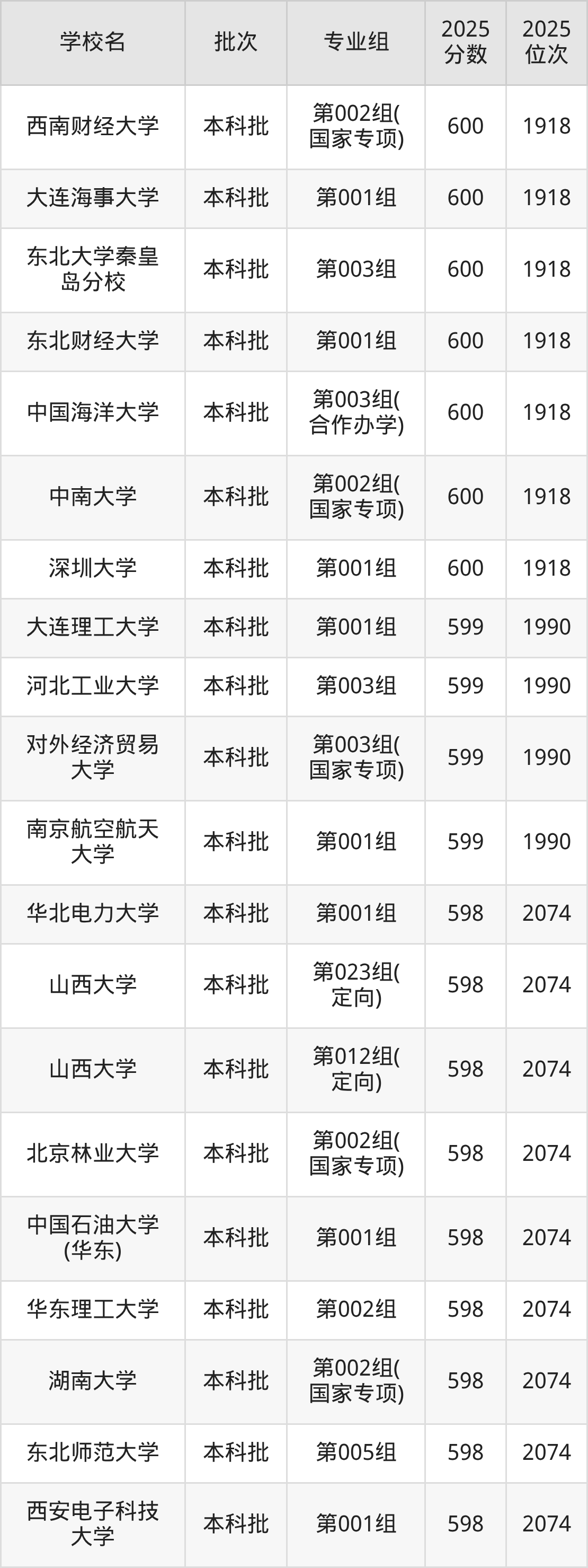 二、山西600分位次排名能上的大学