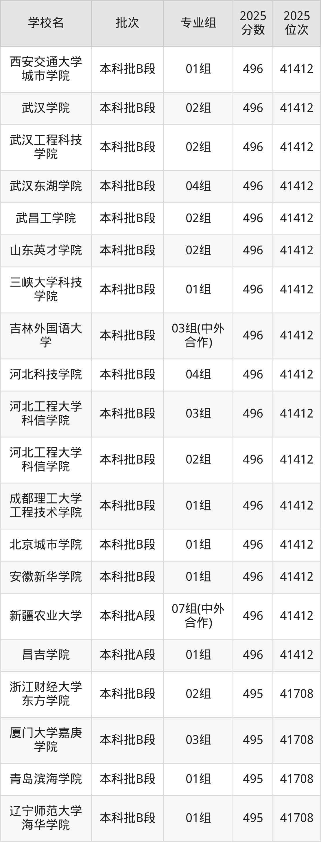 这些都是2026年高考41413名~41708名考生可以报考的大学,更多学校名单如下表所示: