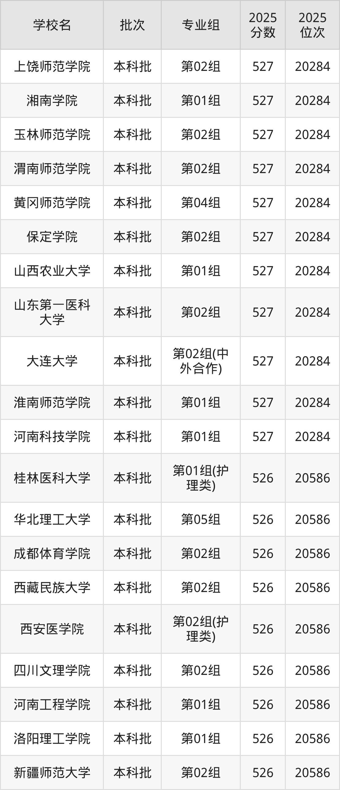 这些都是2026年高考历史类20587名~20886名考生可以报考的大学,更多学校名单如下表所示:
