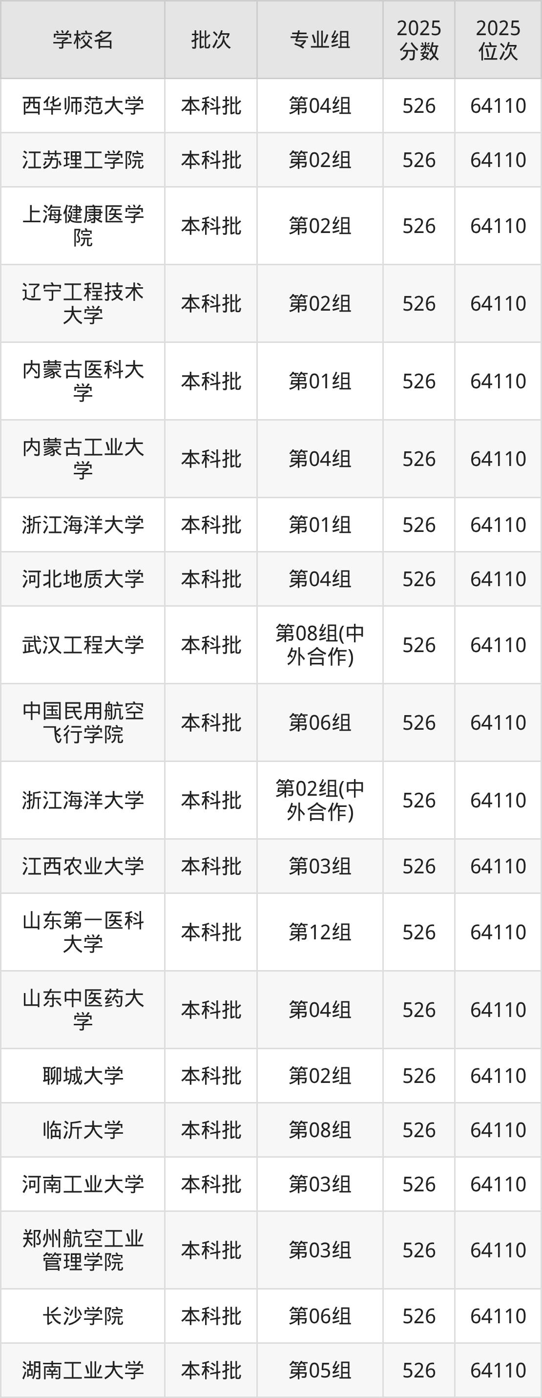 这些都是2026年高考物理类64111名~64962名考生可以报考的大学,更多学校名单如下表所示: