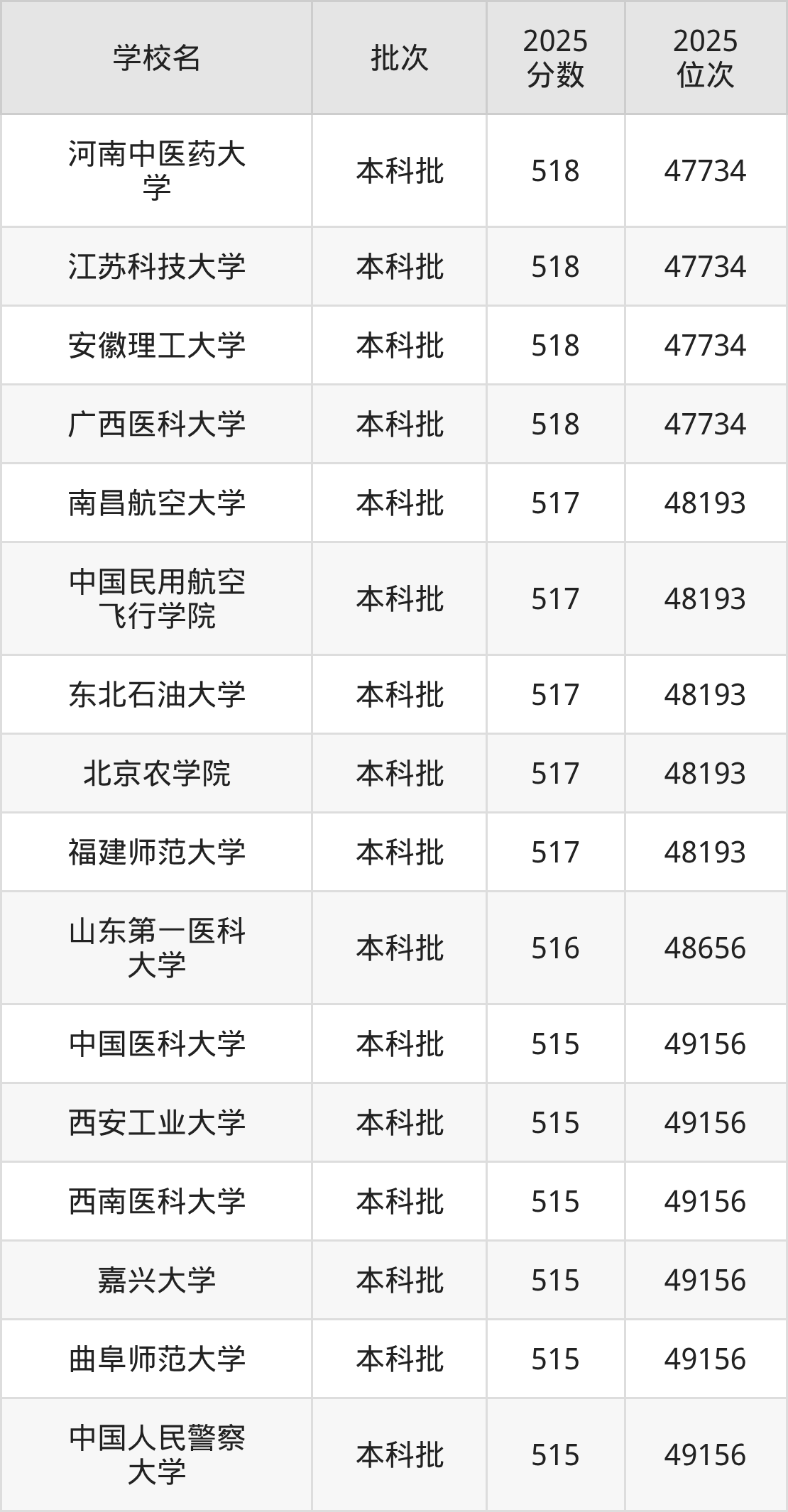 这些都是2026年高考物理类48194名~48656名考生可以报考的大学,更多学校名单如下表所示: